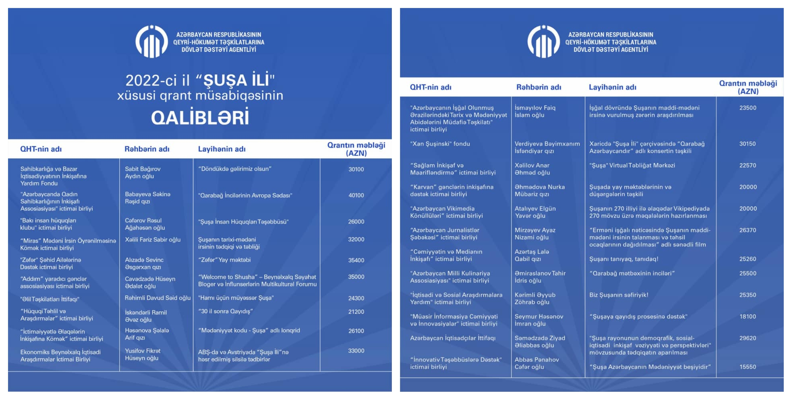 Agentlik qrant müsabiqəsinin nəticələrini elan etdi