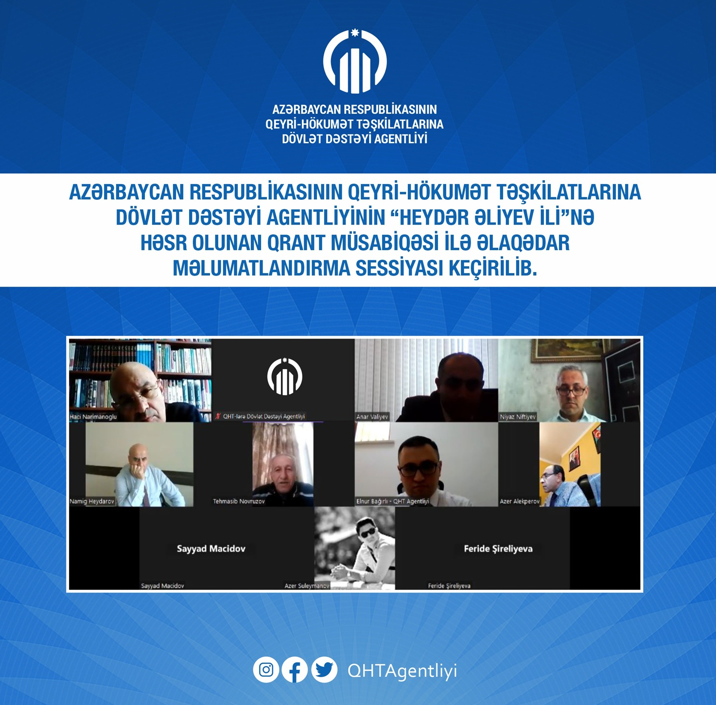 Azərbaycan Respublikasının Qeyri-Hökumət Təşkilatlarına Dövlət Dəstəyi Agentliyinin “Heydər Əliyev İli”nə həsr olunan qrant müsabiqəsi ilə əlaqədar məlumatlandırma sessiyası keçirilib.