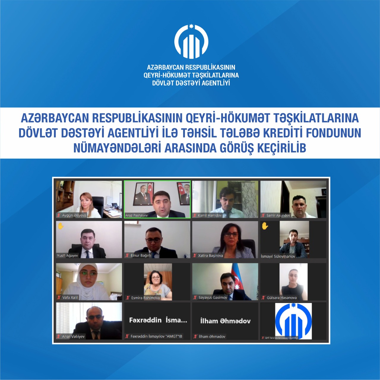 Azərbaycan Respublikasının Qeyri-Hökumət Təşkilatlarına Dövlət Dəstəyi Agentliyinin Müşahidə Şurasının növbəti onlayn iclası keçirilib.