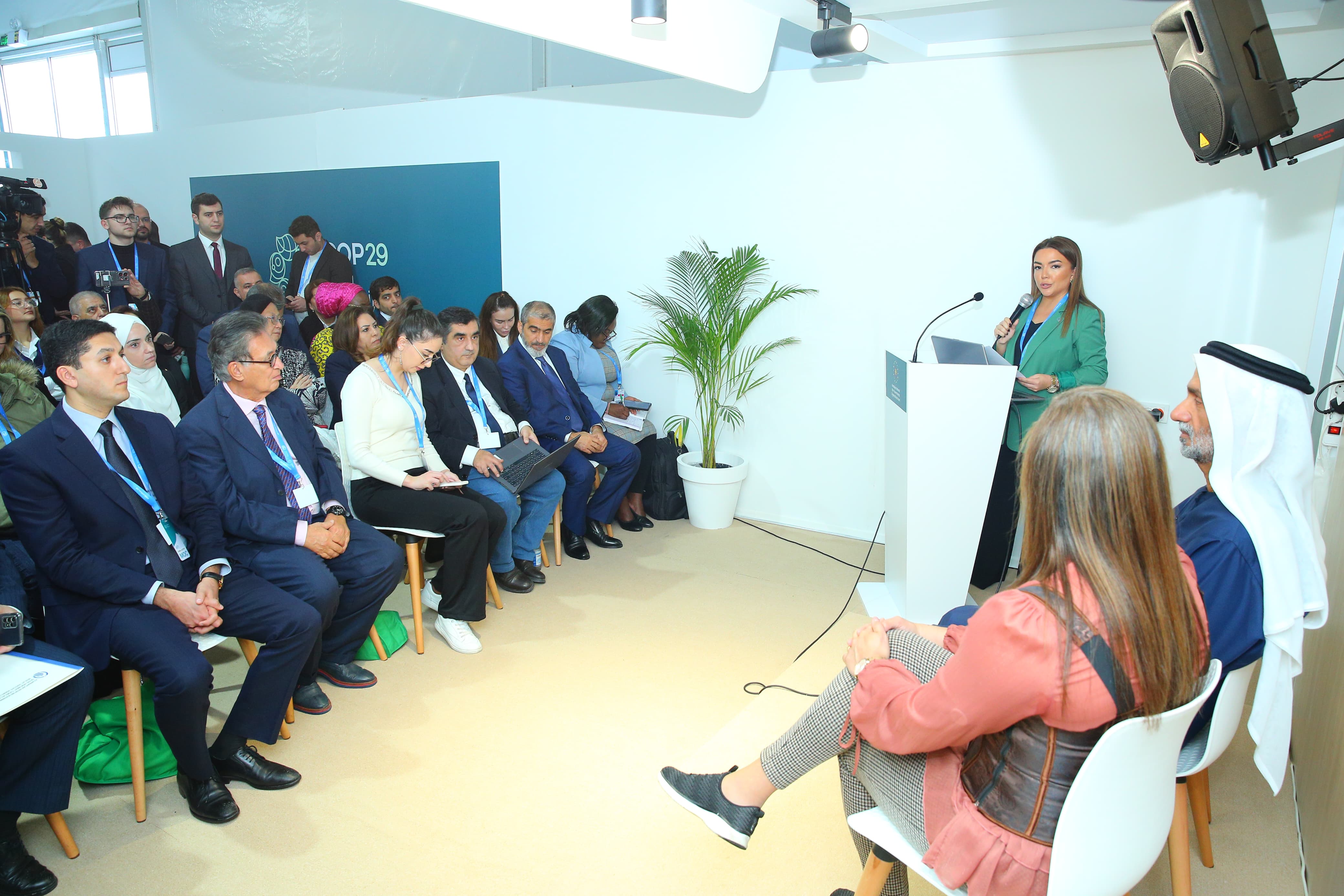 Bərpa Olunan Enerjilər və Enerji Səmərəliliyi üzrə Ərəb Platformasının prezidenti Kamel Esseghairi-nin moderatorluğu ilə keçirilən "COP29: İqlim maliyyəsi, inklüzivlik və ətraf mühitin idarəolunması sahəsində vətəndaş cəmiyyətinin gücləndirilməsi" adlı ilk paneldə Braziliyanın İqlim Dəyişmələri Panelinin İcraçı katibi, Rio-de-Janeyro Federal Universitetinin tədqiqatçısı Andrea Souza Santos, BƏƏ-nin İqlim Şəbəkəsinin rəhbəri Raşa Bayoumi, Azərbaycan Milli QHT Forumunun İdarə Heyətinin üzvü Azər Allahverənov mövzu ətrafında məruzələrlə çıxış edib.