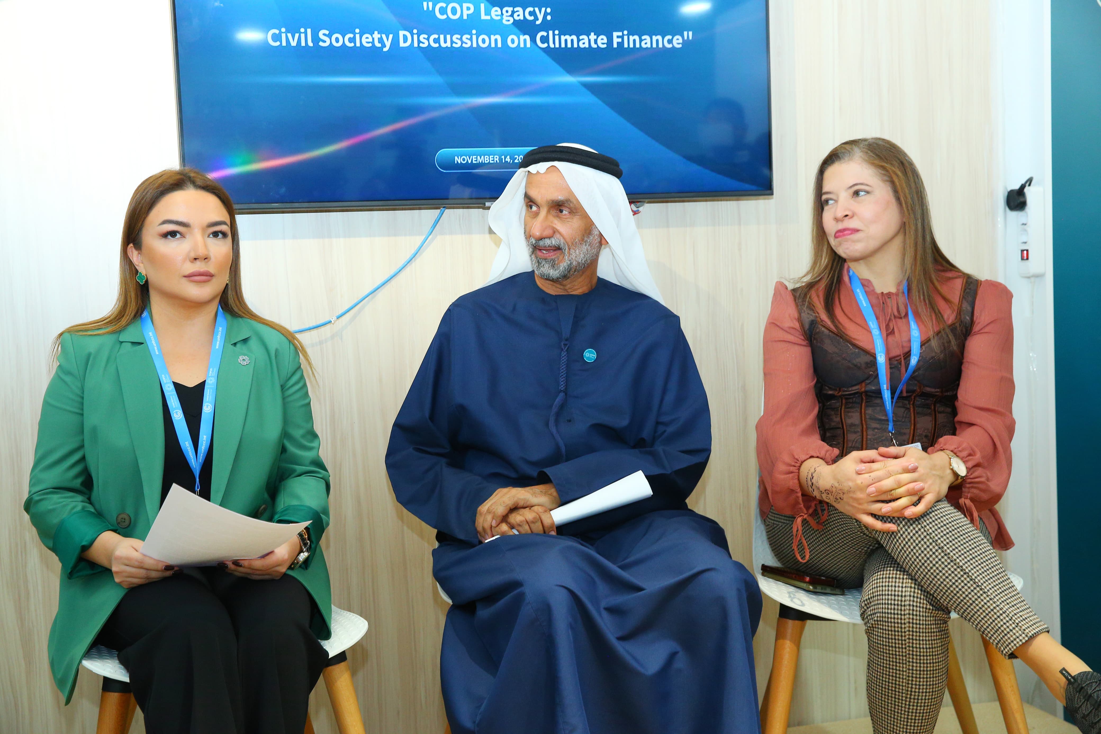 2024-cü il noyabrın 14-də COP29 çərçivəsində Yaşıl Zonada Birləşmiş Ərəb Əmirlikləri, Azərbaycan və Braziliya QHT-ləri iqlim maliyyəsi mövzusunda ilk dəfə birgə forum keçirib. “COP Mirası - vətəndaş cəmiyyətinin iqlim maliyyəsi üzrə müzakirələri” adlı forum Azərbaycan Respublikasının Qeyri-Hökumət Təşkilatlarına Dövlət Dəstəyi Agentliyinin və Azərbaycan Milli QHT Forumunun təşkilatçılığı ilə baş tutub.