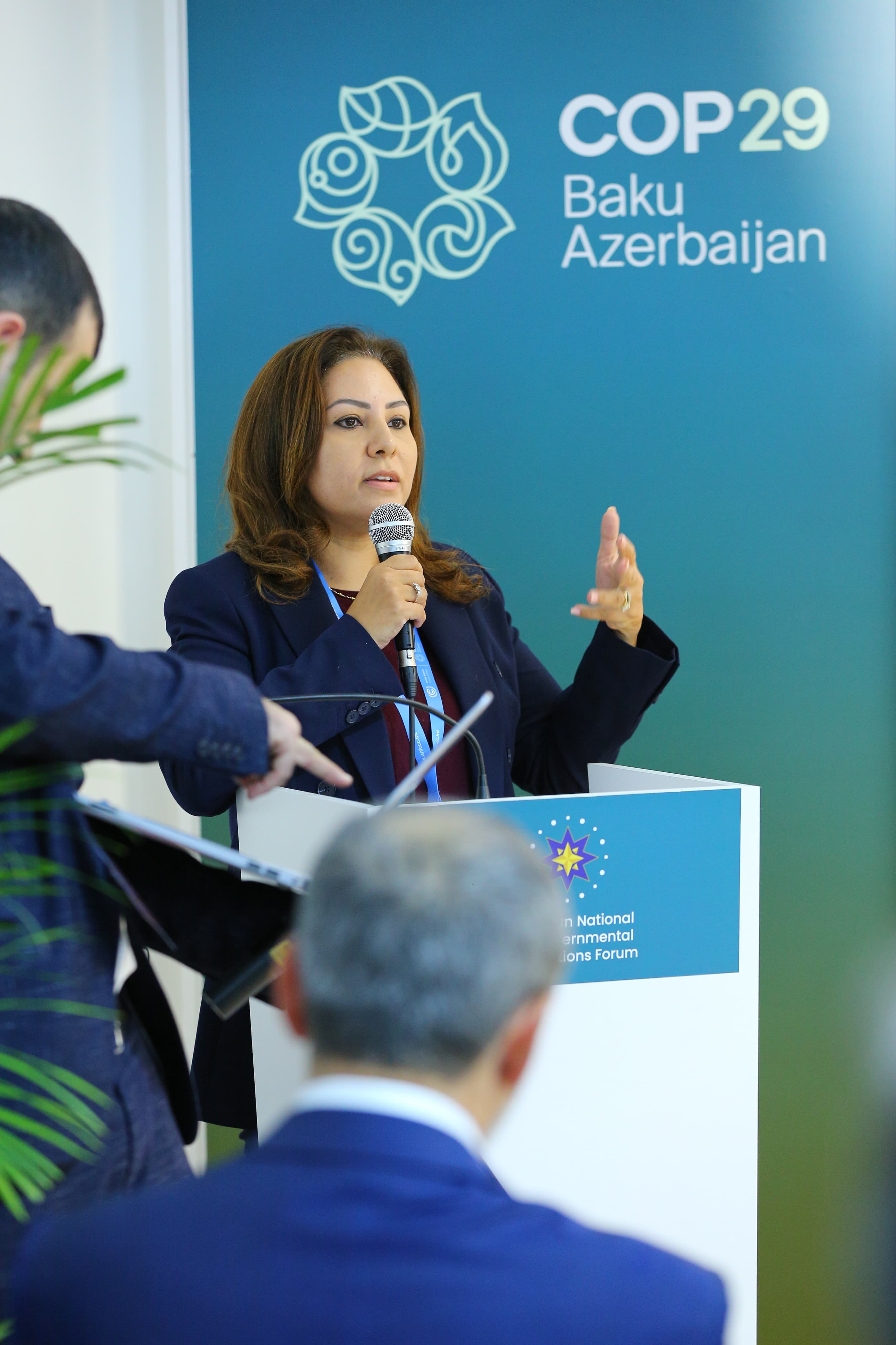 Azərbaycan Milli QHT Forumunun İdarə Heyətinin sədri Ramil İskəndərlinin moderatorluğu ilə keçirilən “COP irsi: iqlim maliyyəsi, inklüzivlik və ətraf mühitin mühafizəsi üzrə vətəndaş cəmiyyətinin gücləndirilməsi” adlı ikinci paneldə BƏƏ-nin Sosial İnkişaf Nazirliyinin Monitorinq və qiymətləndirmə şöbəsinin rəhbəri Əhməd Xəlifə Əl Şəmsi, Dünya Resurs İnstitutunun Braziliya üzrə iqlim direktoru Karen Silvervud-Cop, Braziliyanın ətraf mühit, sağlamlıq üzrə ictimai fəalı Ajaj Rafah təqdimatlarla çıxış edib.