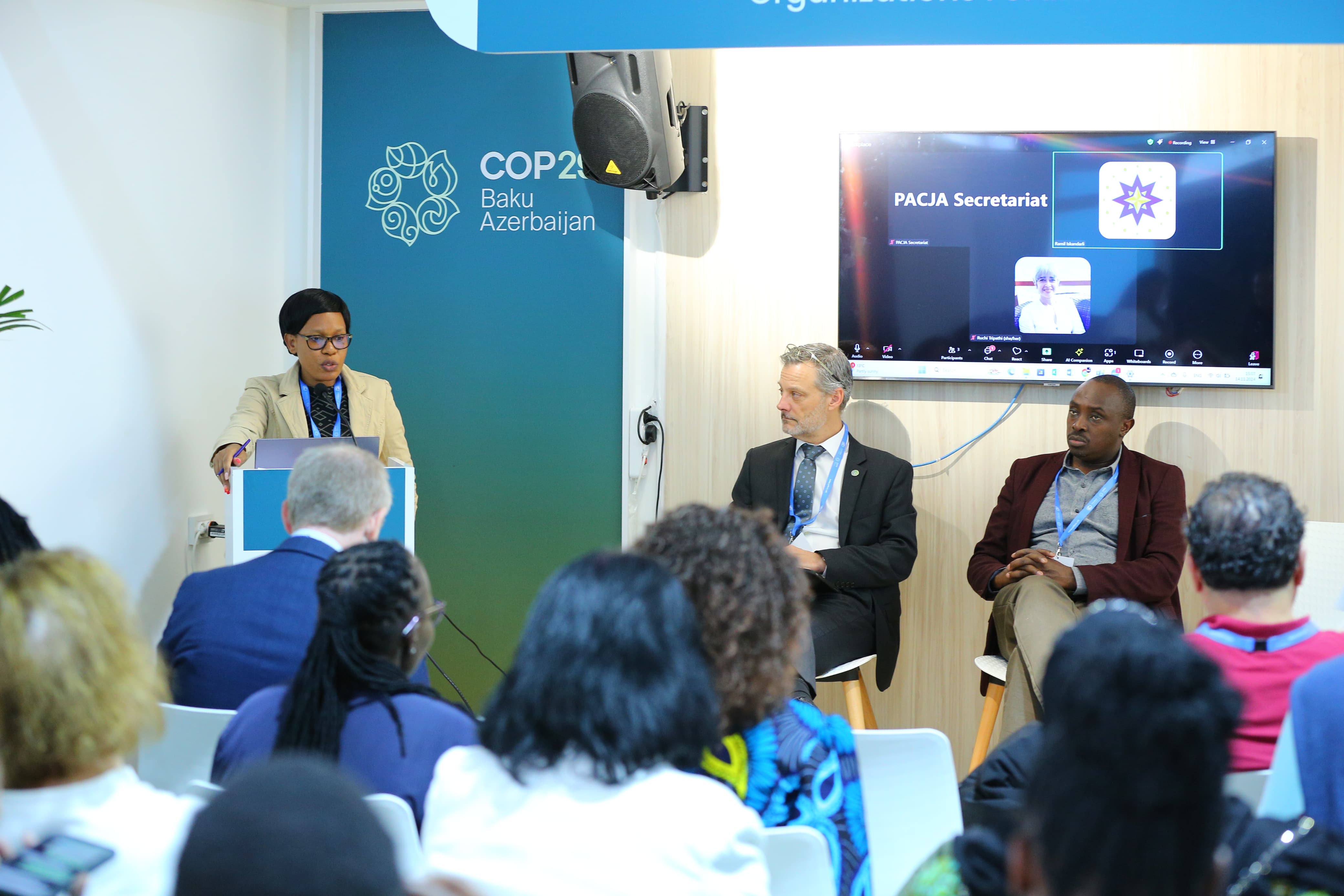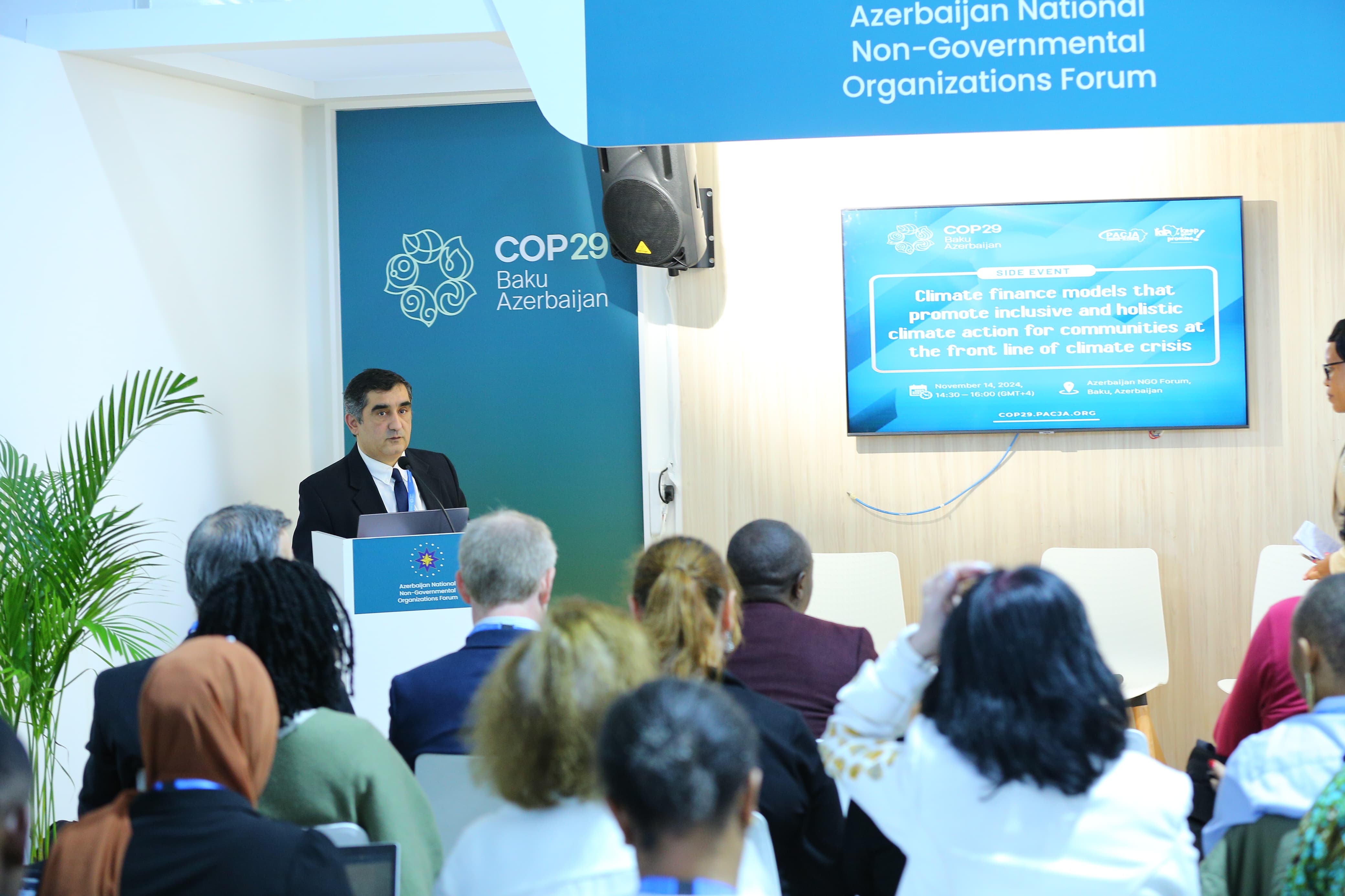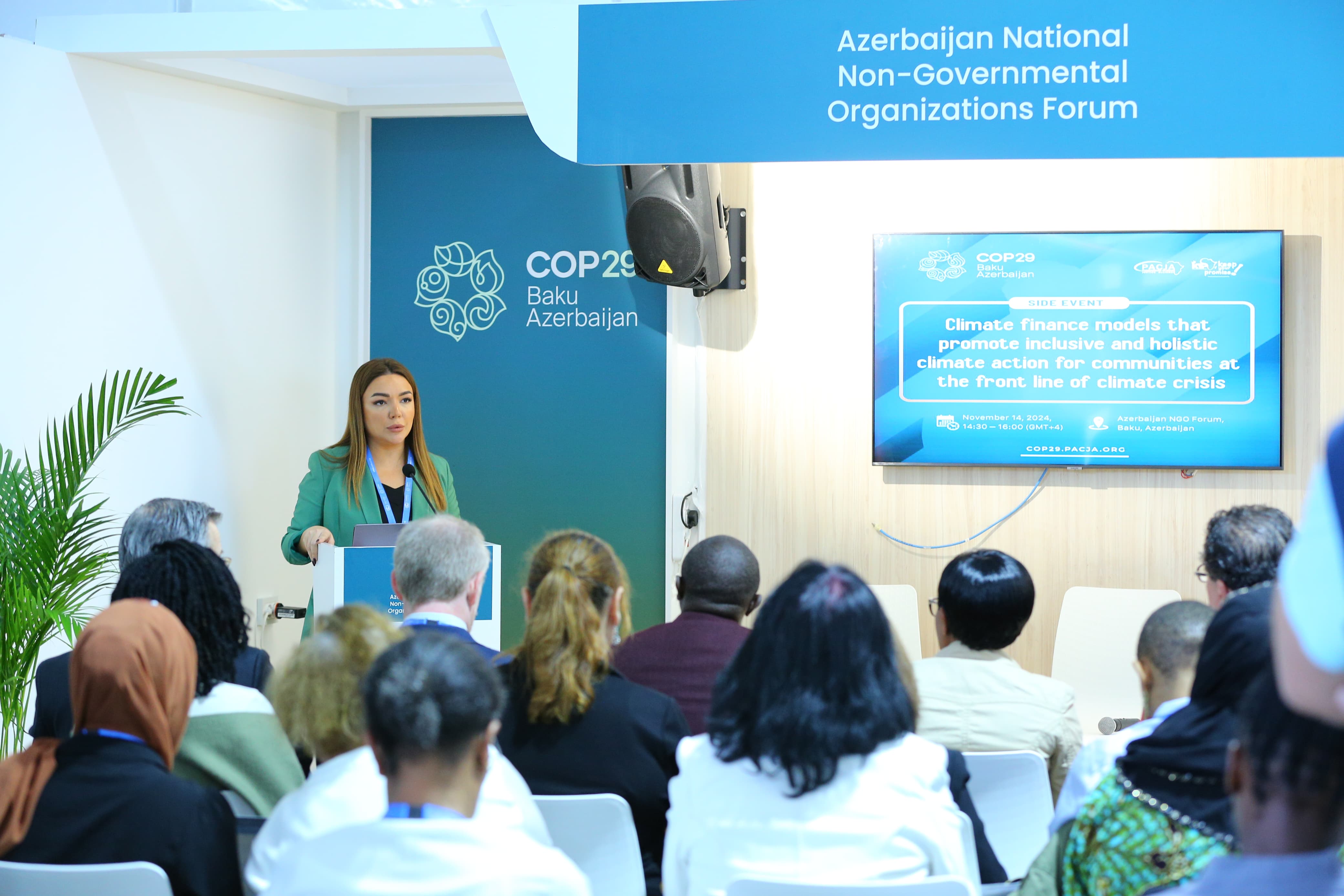 2024-cü il noyabrın 14-də COP29 çərçivəsində Yaşıl Zonada Milli QHT Pavilyonunda Pan-Afrika İqlim Ədaləti Alyansı (PACJA) “İqlim böhranının ön cəbhəsində olan icmalar üçün inklüziv və hərtərəfli iqlim tədbirlərini təşviq edən iqlim maliyyəsi modelləri” mövzusunda forum keçirib.