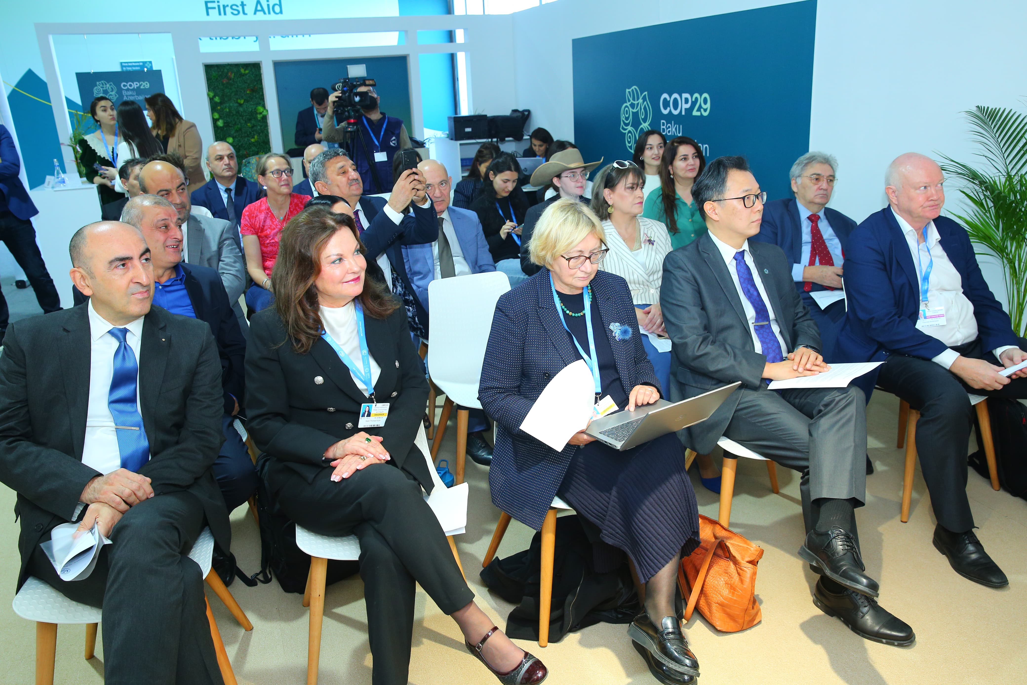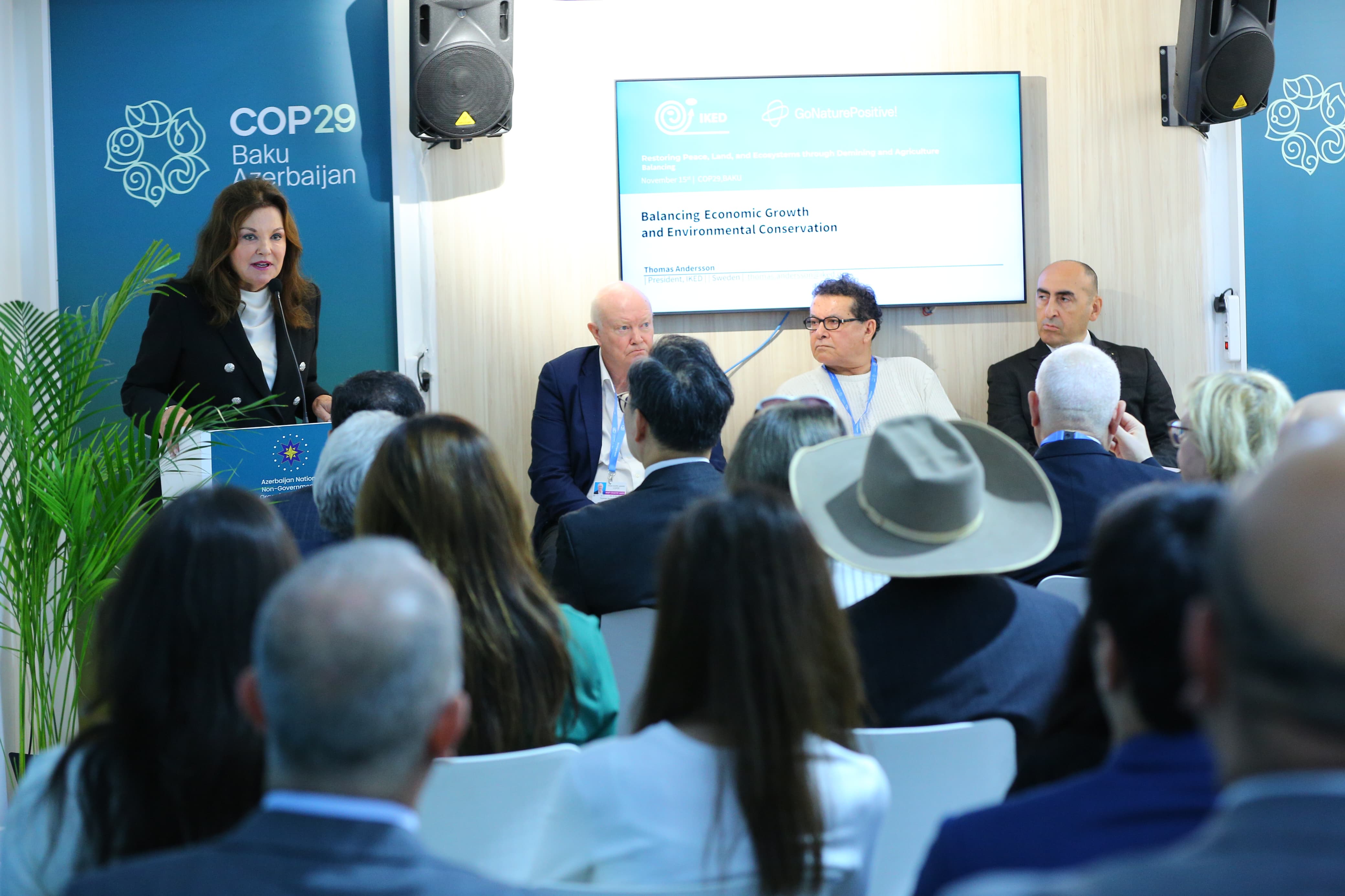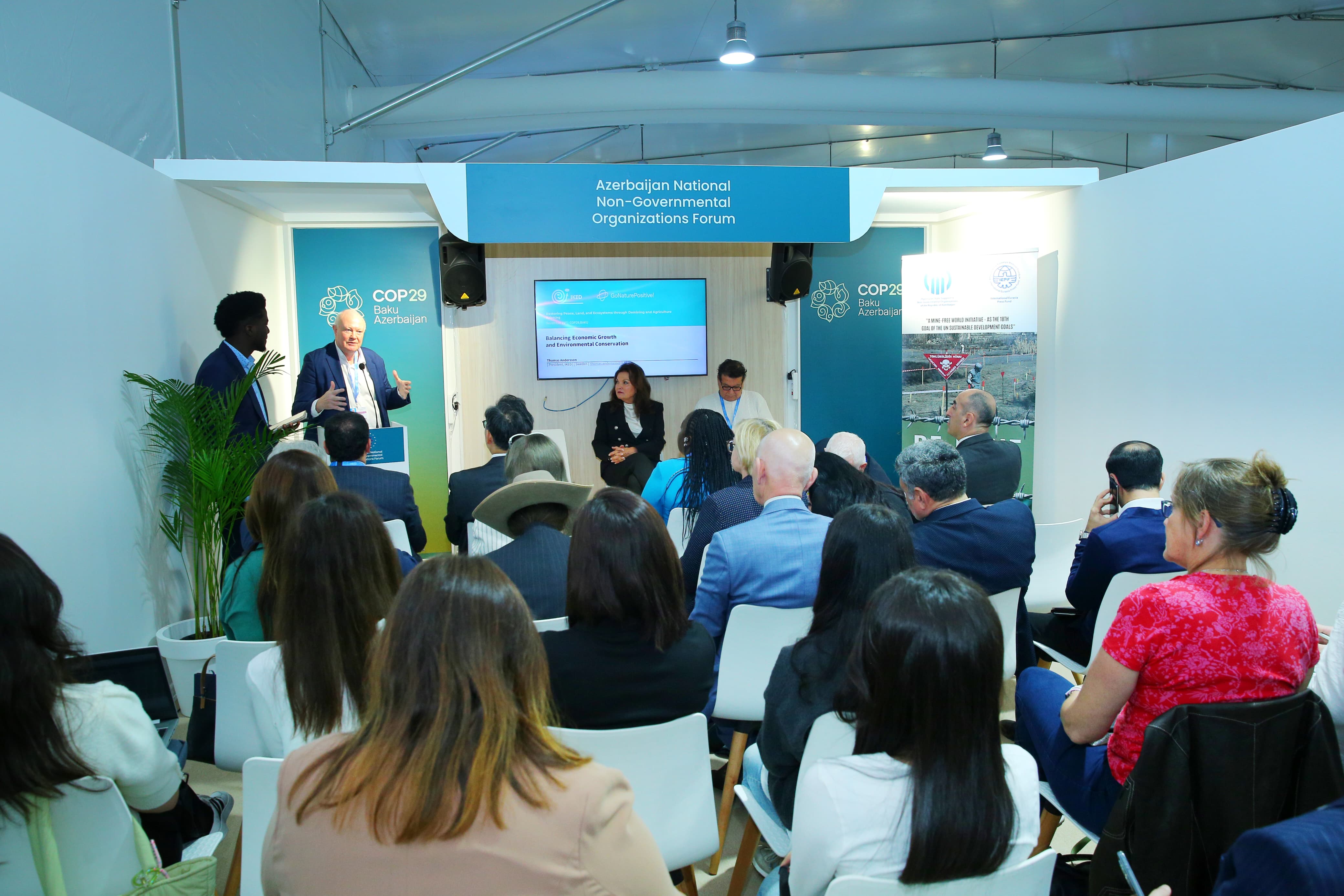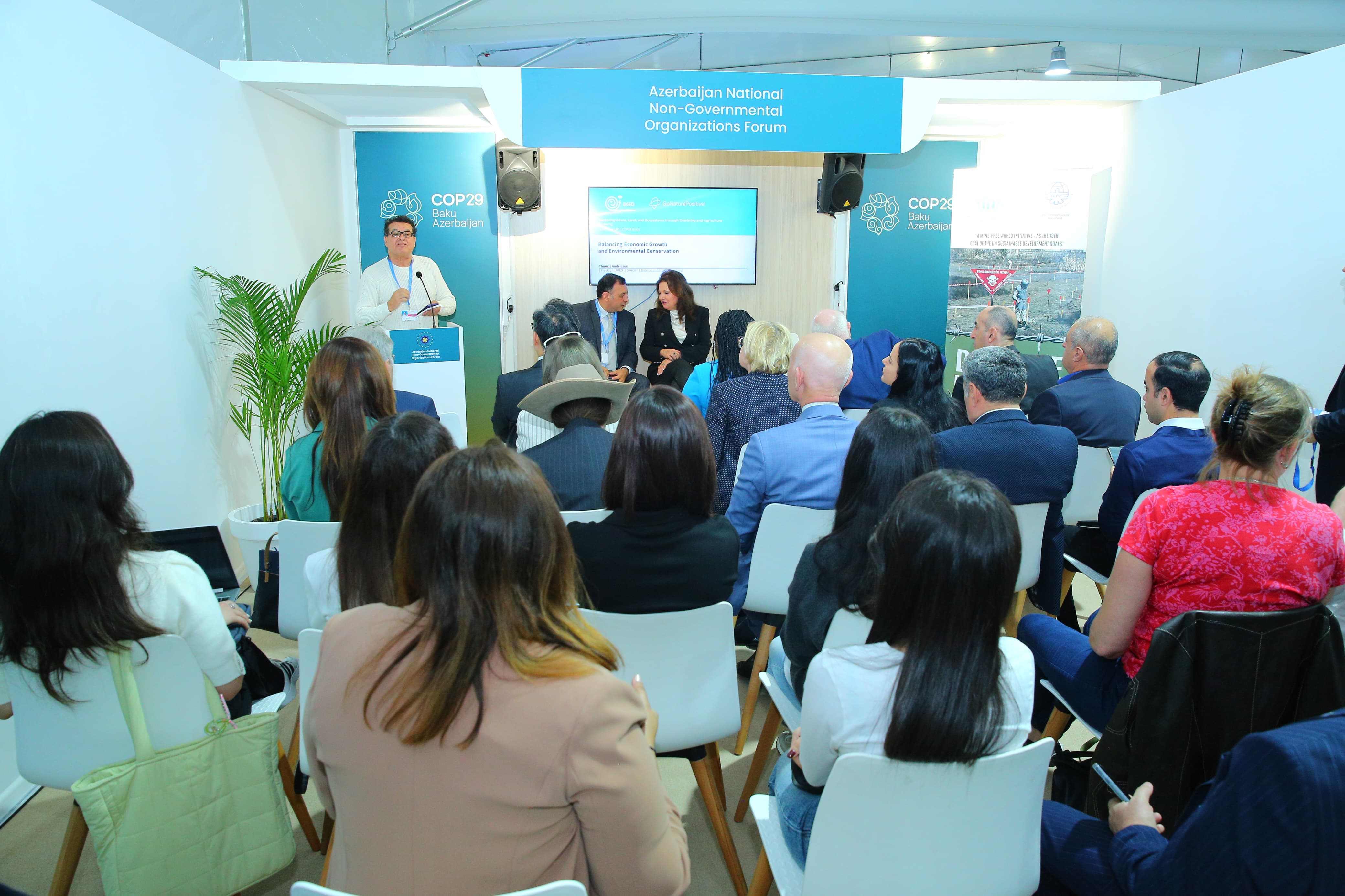 2024-cü ilin noyabrın 14-də COP29 çərçivəsində Milli QHT Forumu Pavilyonunda Beynəlxalq Avrasiya Mətbuat Fondu (BAMF) və ABŞ-ın “Sülhün Kökləri” təşkilatının təşkilatçılığı ilə “Sülhün, torpağın və ekosistemlərin minatəmizləmə və kənd təsərrüfatı vasitəsilə bərpası" mövzusunda yan tədbir keçirilib.