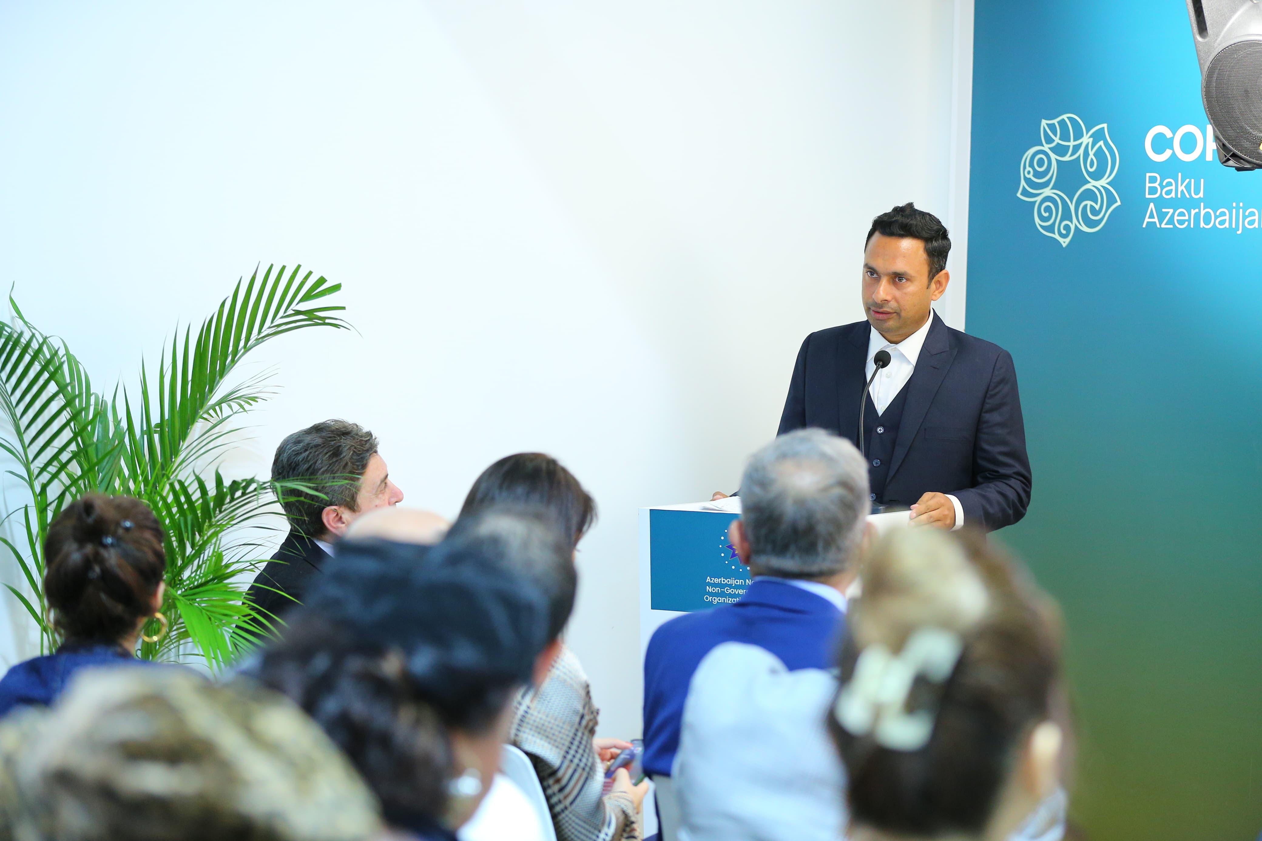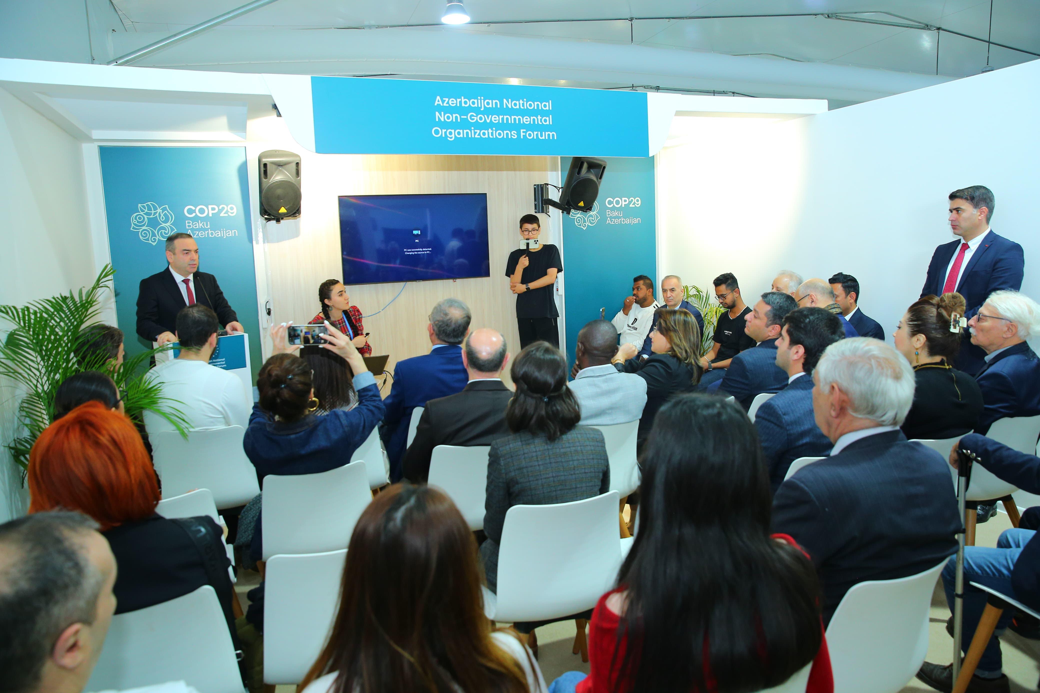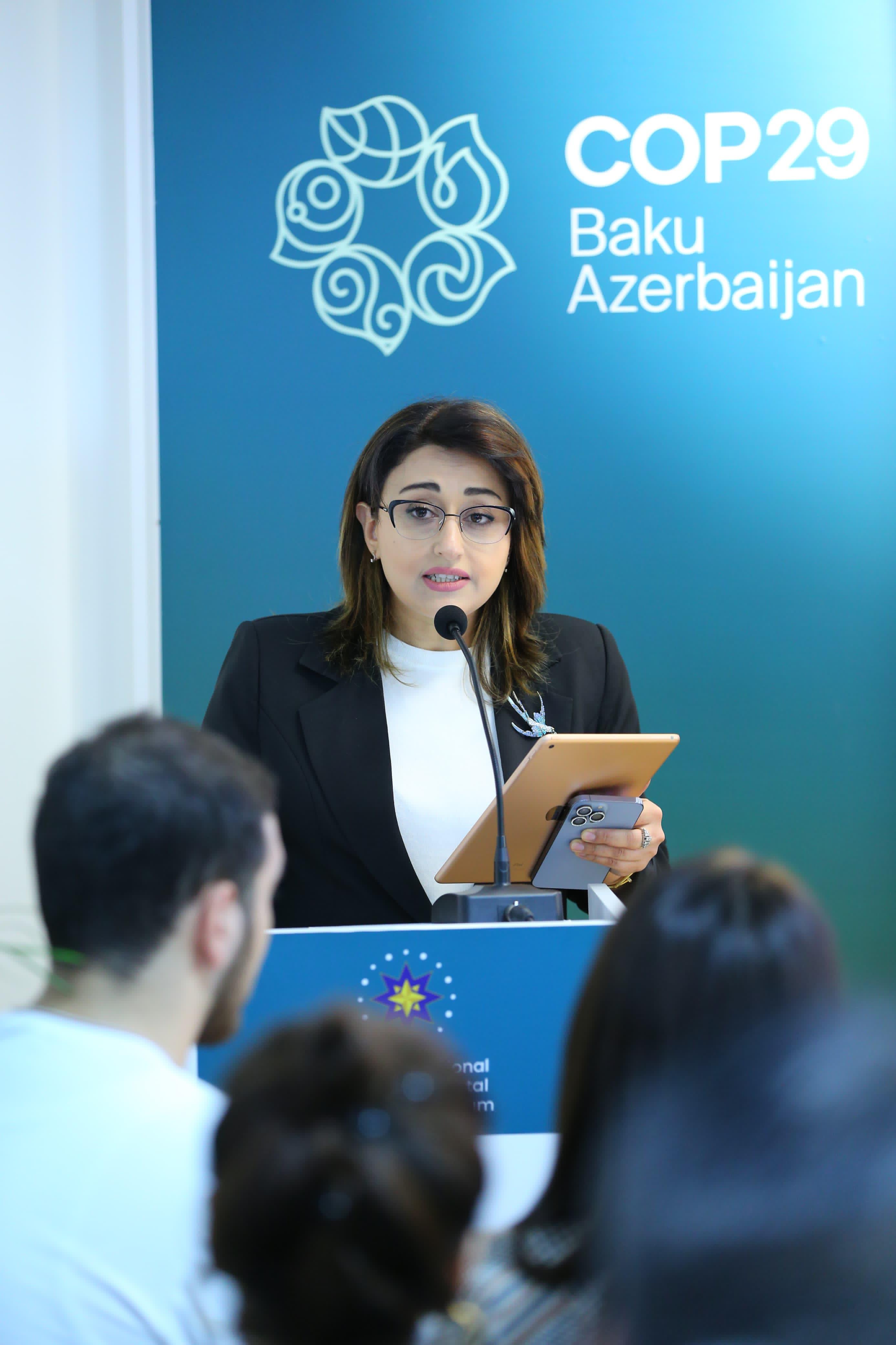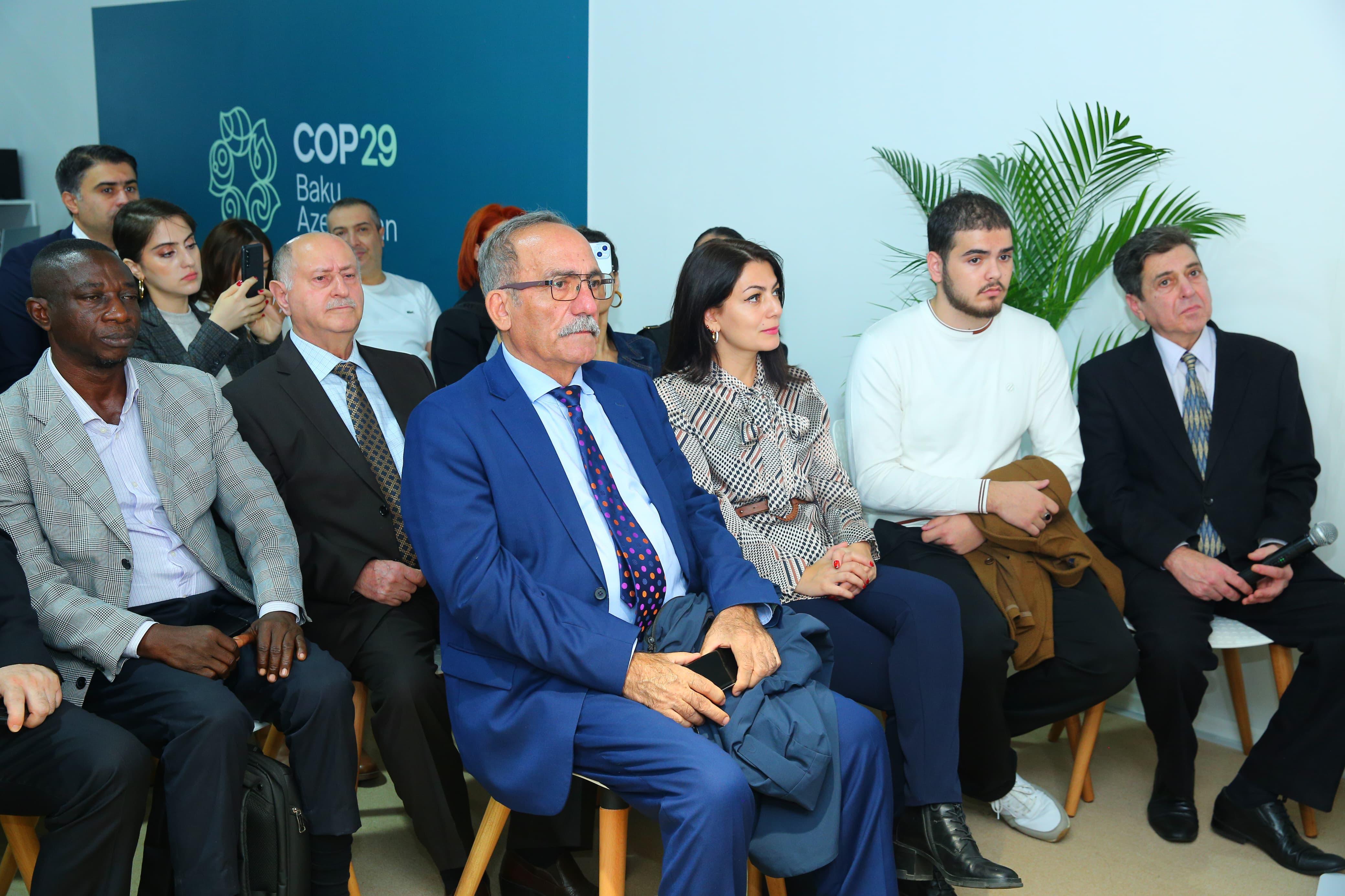 2024-cü il noyabrın 16-da COP29 çərçivəsində Milli QHT Forumu Pavilyonunda “Beynəlxalq Hüquq sahəsində Maarifləndirmə və Tədqiqatlar” İctimai Birliyinin “Qarabağ, Şərqi Zəngəzur və Naxçıvan MR-da yaşıl enerji zonaları: hüquqi dəyərləndirmələr” adlı tədbir keçirilib.