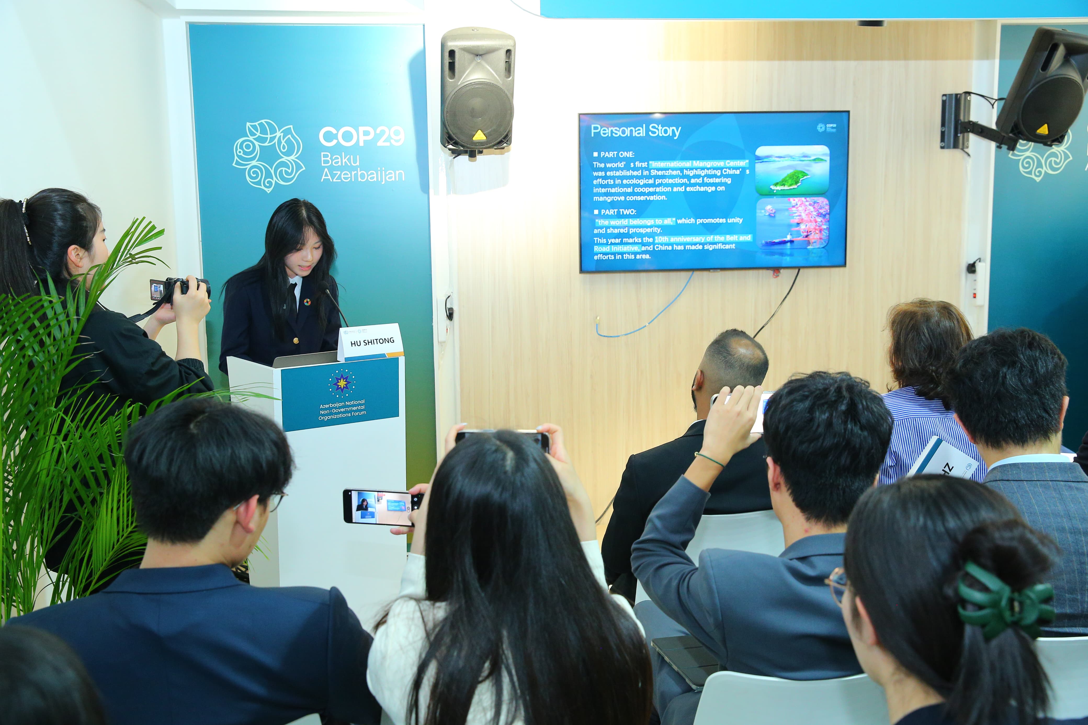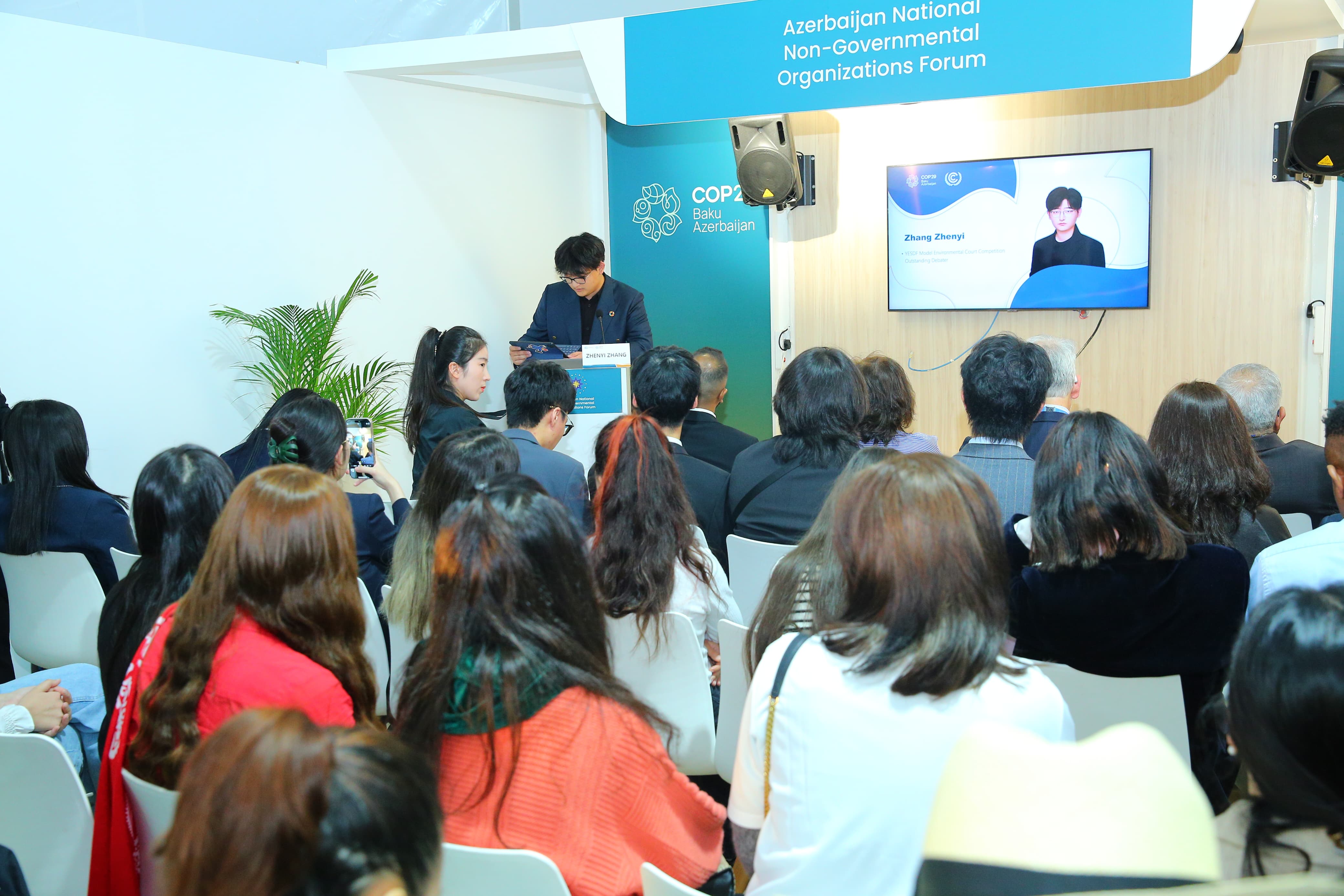 Tədbirdə Konqo Respublikasının … təşkilatının sədri Makuantsi Artur Patrisi, Almaniya tədqiqatçısı Rahim Şmit, “Şeffer” şirkətlər qrupunun vitse-prezidenti Yaşar Musayev, Pakistandan ekoaktivistlər - Ali Raza, Ənvər-ül Haqq, Şri-Lankadan ictimai fəal Nayana Adıkari yaşıl enerjinin əhəmiyyəti barədə çıxışlar ediblər, Azərbaycanın təşəbbüslərini yüksək qiymətləndiriblər.