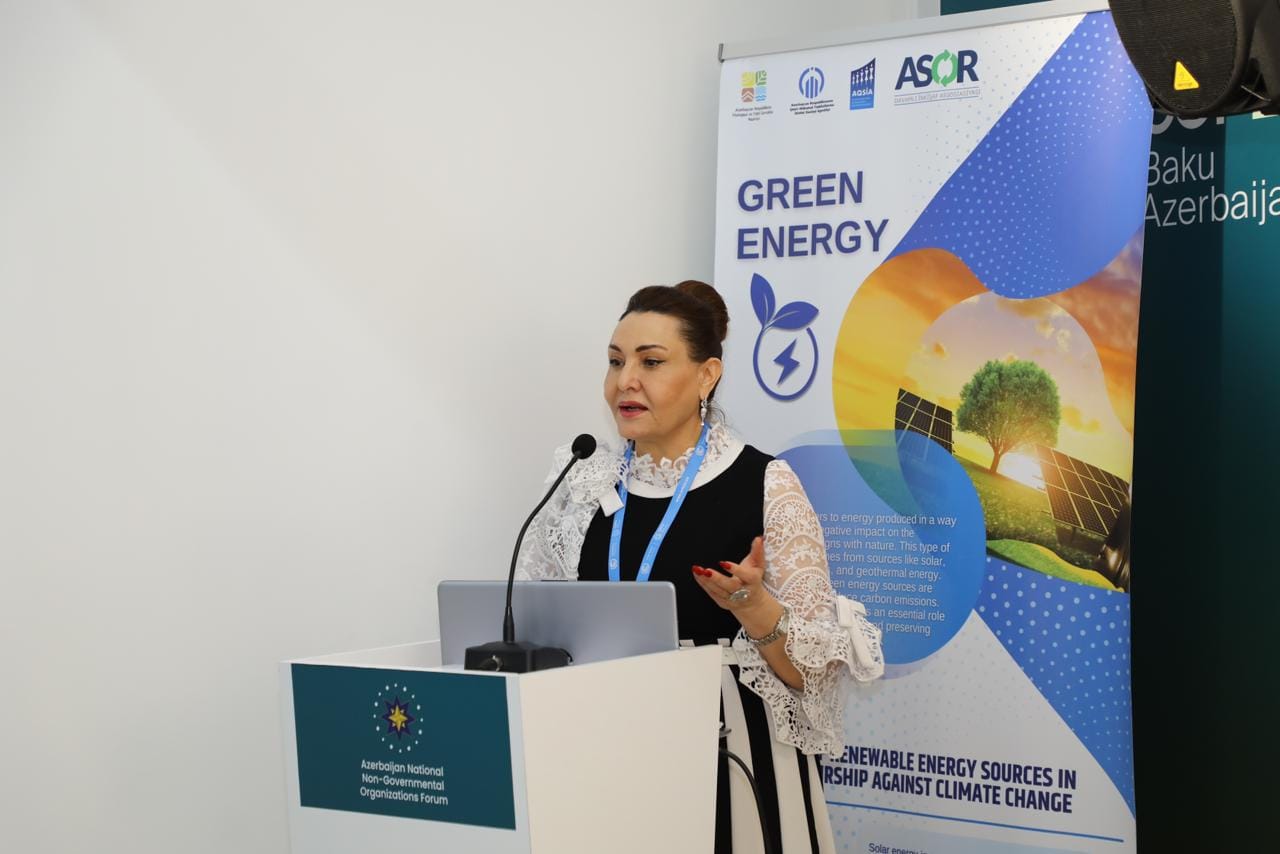 2024-cü il noyabrın 16-da COP29 çərçivəsində Yaşıl Zonada yerləşən Milli QHT Forumu Pavilyonunda Azərbaycanda Qadın Sahibkarlığının İnkişafı Assosiasiyası “İqlim dəyişmələrinə qarşı sahibkarlıqda bərpa olunan enerji mənbələrinin təşviqi” layihəsi çərçivəsində bərpa olunan enerji mənbələrinin tətbiqinə dair interaktiv seminar keçirilib.