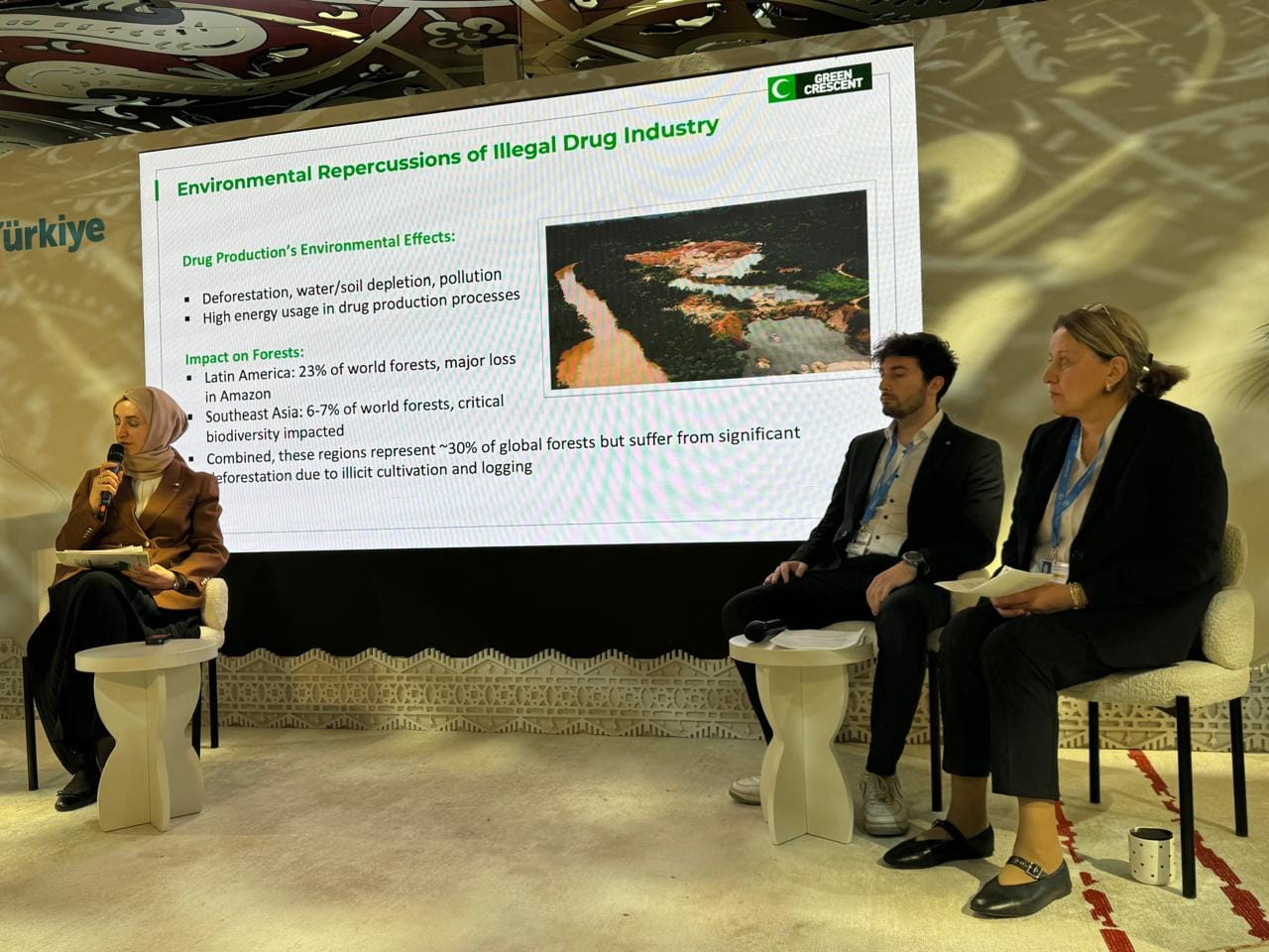2024-cü il noyabrın 19-da COP29 çərçivəsində Mavi Zonada yerləşən Türkiyə Cümhuriyyətinin ölkə pavilyonunda "Meşələrdən icmalara" mövzusunda yan tədbir keçirilib. Tədbir Azərbaycanın “Ecomed” və Türkiyənin “Yeşilay” təşkilatlarının birgə təşkilatçılığı ilə baş tutub. Tədbirdə COP29 Təşkilat Komitəsinin üzvü, COP29 QHT Koalisiyasının üzvü Gülşən Axundova, Türkiyədən Sümeyya Ceylan, Sara Evli Özhan və digərləri təqdimatlar ediblər. Panel müzakirələr zamanı iştirakçılar iqlim dəyişmələrinin təsirləri və yaşıl enerjiyə keçidin əhəmiyyəti haqqında fikir mübadiləsi aparıblar.