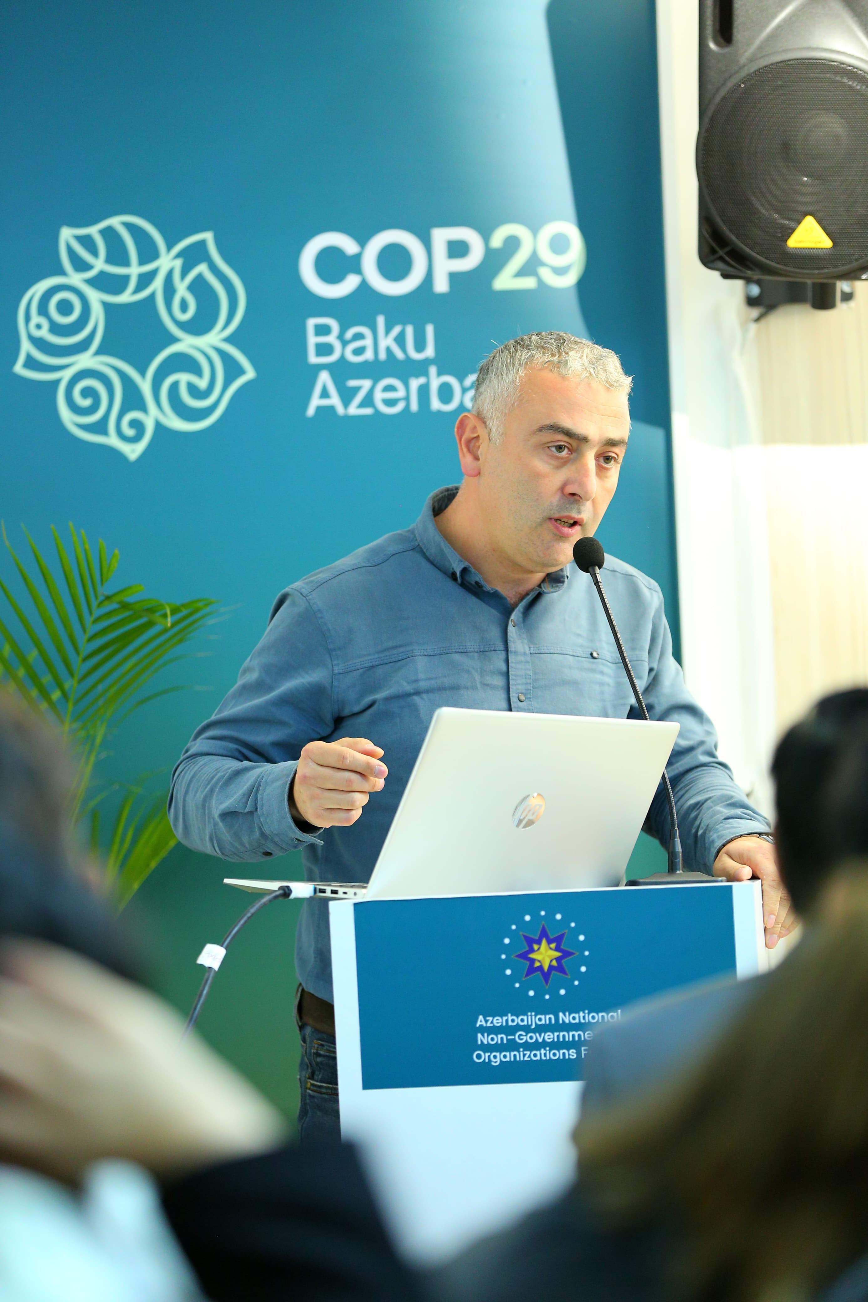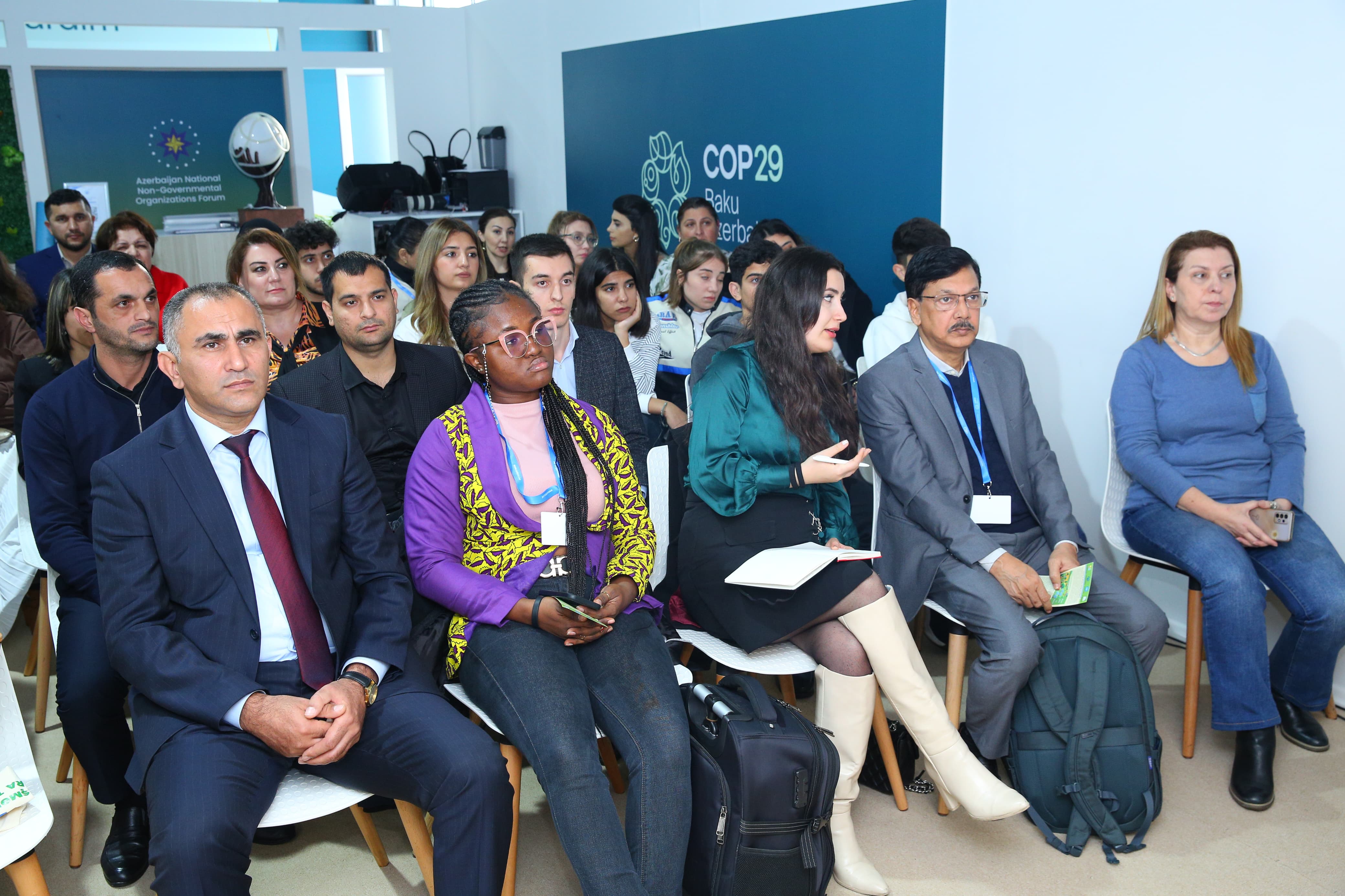 Sessiyada GAYO-Gənclərin İqlim Şuraları Qlobal Alyansının təmsilçisi İmpraim Margaret, ekoloq və sıfır Tullantı üzrə ekspert Şəhriyar Hüseyn çıxış edərək plastik materialların ənənəvi bioloji materiallarla əvəz olunmasının vacibliyi və praktiki yolları, sıfır tullantı anlayışı, onun ətraf mühitin mühafizəsi, dayanıqlı inkişaf və dolanışıq vasitələrinin təmin olunması barədə praktiki həllər təqdim edilib.