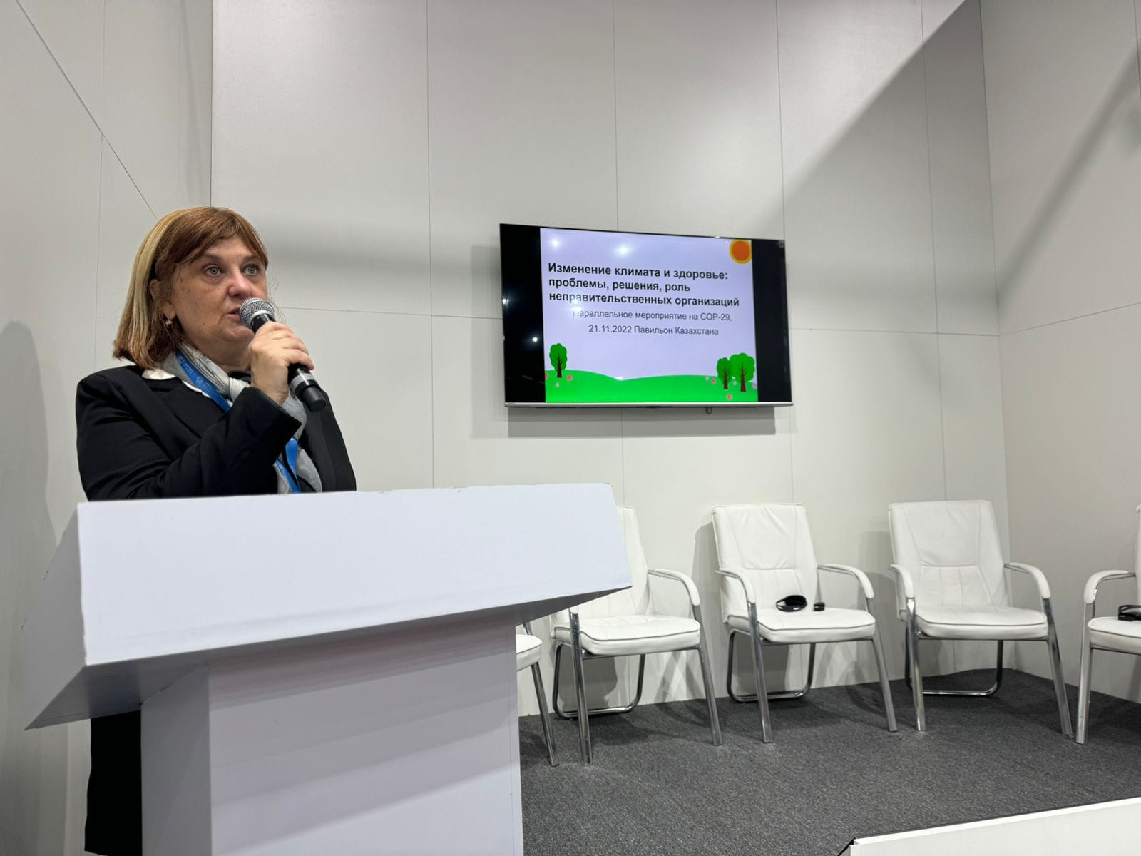 2024-cü il noyabrın 21-də COP29 çərçivəsində Mavi Zonada Qazaxıstanın ölkə pavilyonunda “İqlim dəyişmələri və sağlamlıq: sektorlararası qarşılıqlı əlaqənin rolu və perspektivləri” adlı yan tədbir keçirilib. Tədbir Azərbaycanın "Ecomed" və