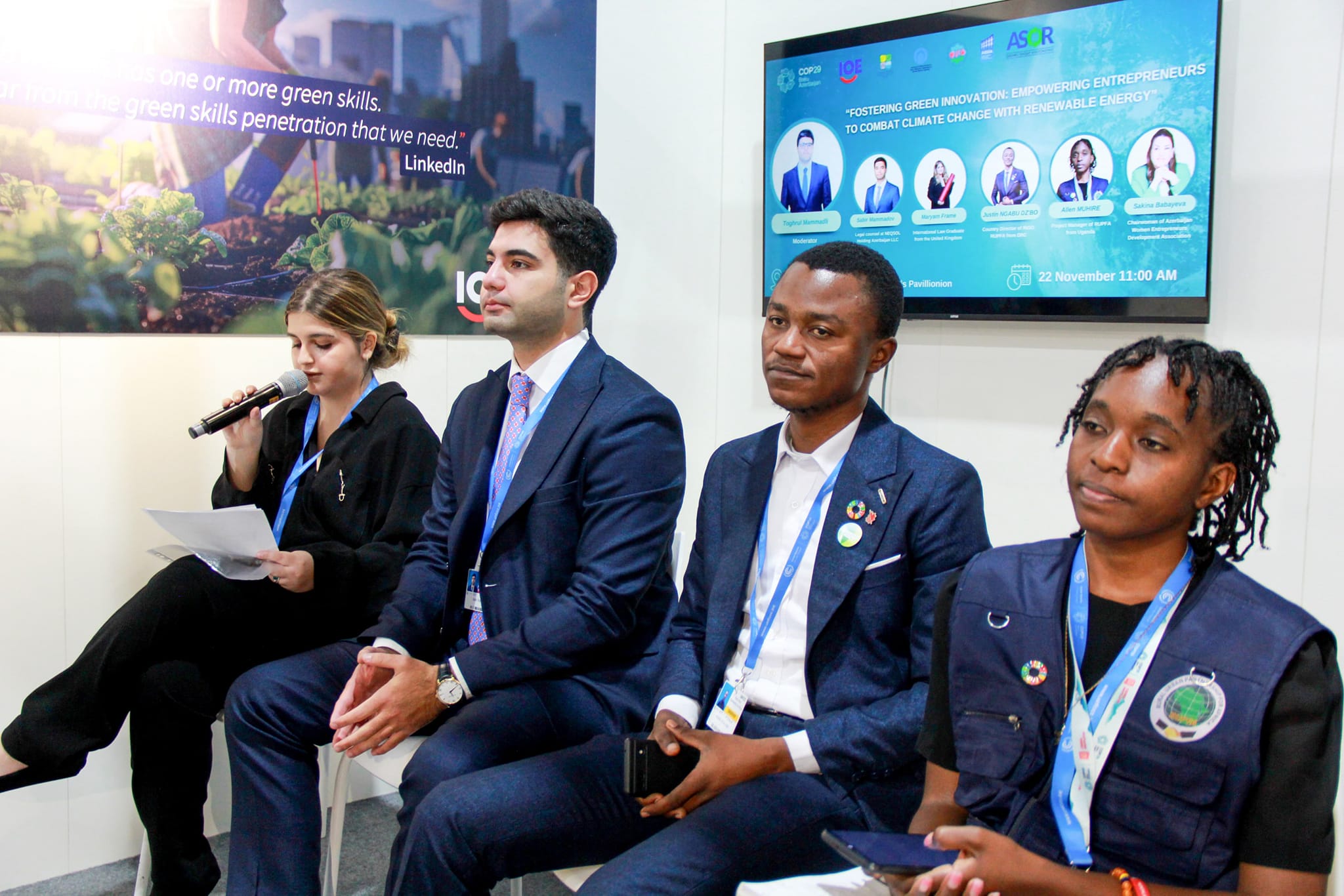 2024-cü il noyabrın 22-də COP29 çərçivəsində Mavi Zonada “Azərbaycanda Qadın Sahibkarlığının İnkişafı Assosiasiyası” və Azərbaycan Milli Sahibkarlar Konfederasiyası tərəfindən təşkil olunan “Yaşıl innovasiyaların təşviqi: sahibkarların bərpa olunan enerji ilə iqlim dəyişmələri ilə mübarizə üçün gücləndirilməsi” adlı yan tədbir keçirilib.