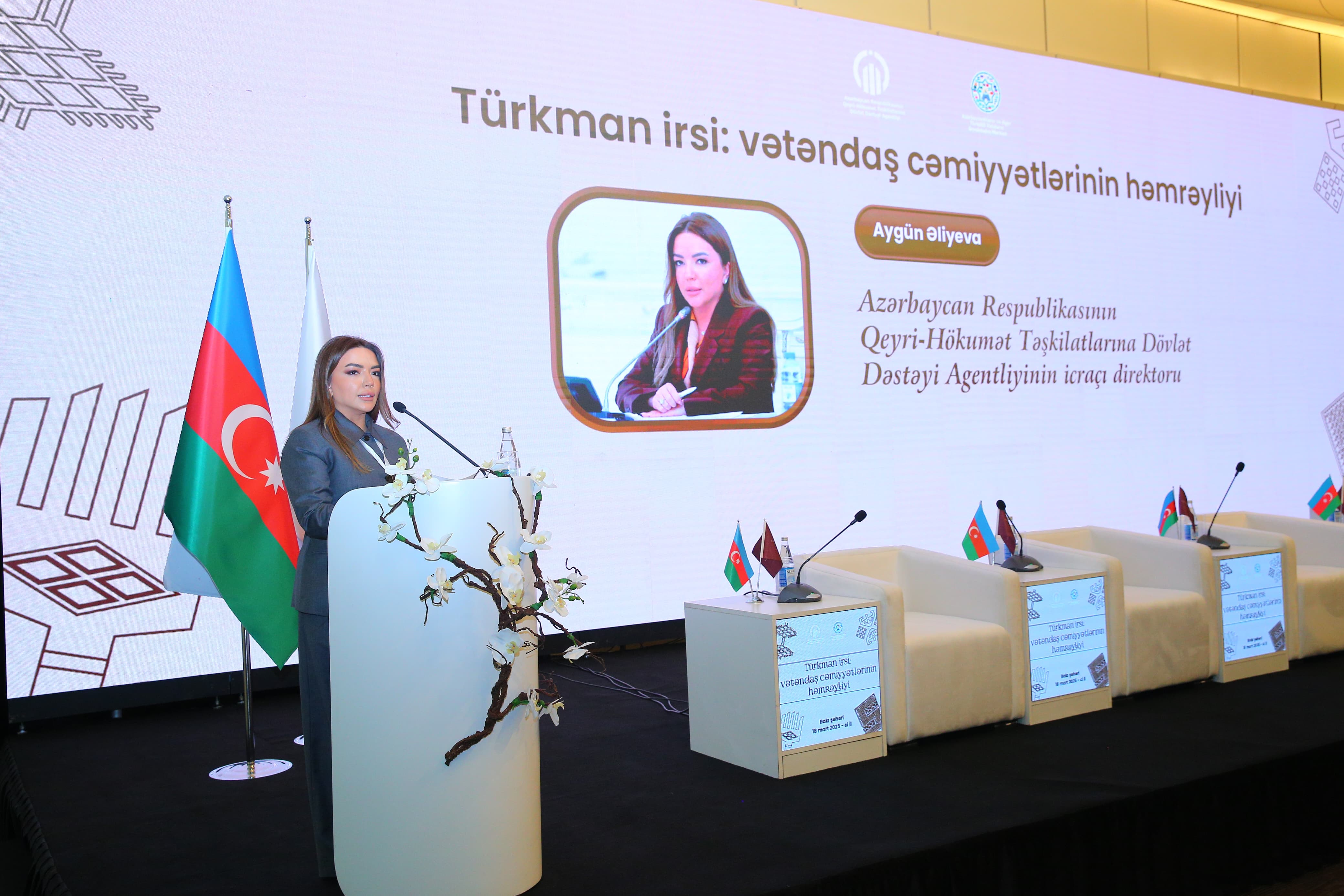 QHT-lərə Dövlət Dəstəyi Agentliyinin icraçı direktoru Aygün Əliyeva qonaqları salamalayaraq bildirib ki, ortaq dəyərlər türk dünyasının böyük sərvətidir, türkmanlar ləyaqətlə öz milli kimliklərini, dilini və mədəniyyətini qorumağı bacarıb, yaşadıqları ölkələrin tərəqqisinə mühüm töhfələr verib, rifahın, əmin-amanlığın təmin olunmasında yaxından iştirak edib.