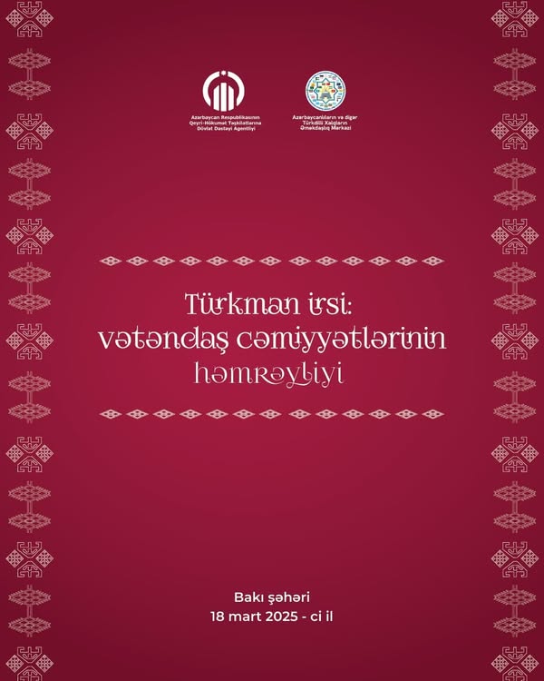 Bu gün – ilaxır çərşənbə günü Heydər Əliyev Mərkəzində Azərbaycan Respublikası QHT-lərə Dövlət Dəstəyi Agentliyinin xətti ilə "Türkman irsi: vətəndaş cəmiyyətlərinin həmrəyliyi" adlı forum öz işinə başlayacaq.