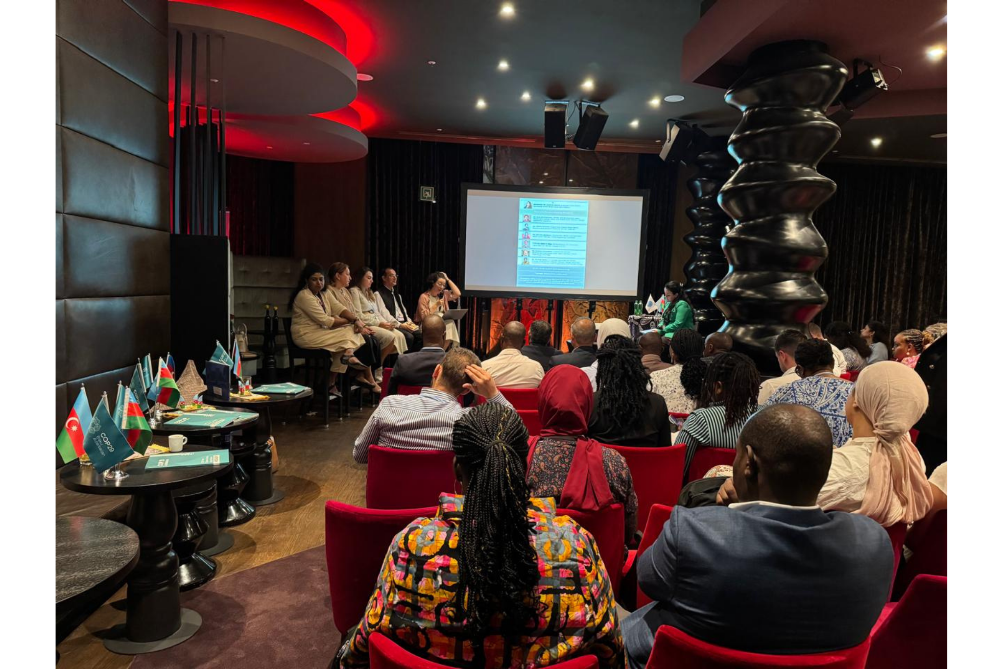 Platforma Katibliyinin əməkdaşı Nədimə Rəhimlinin moderatorluğu ilə baş tutan müzakirələrdə UNFCCC-nin iqlim uyğunlaşması üzrə təmsilçisi, Afrika və Qlobal Cənub üzrə siyasət tədqiqatçısı Soha Bençekrun (Soha Benchekroun), ARROW təşkilatının Asiya-Sakit okean regionu üzrə Proqram direktoru Menka Qundan (Menka Goundan), “Gender Hub Azerbaijan” İctimai Birliyinin sədri Məryəm Məcidova, az inkişaf etmiş ölkə universitetlərinin İqlim Dəyişmələri Konsorsiumunun rəhbəri, COP29 Elmi Şurasının üzvü Professor Mizan R.Xan (Mizan R. Khan), “Qadın İnkişaf və Gələcək” İctimai Birliyinin sədri Gülşən Axundova spiker qismində çıxış ediblər.