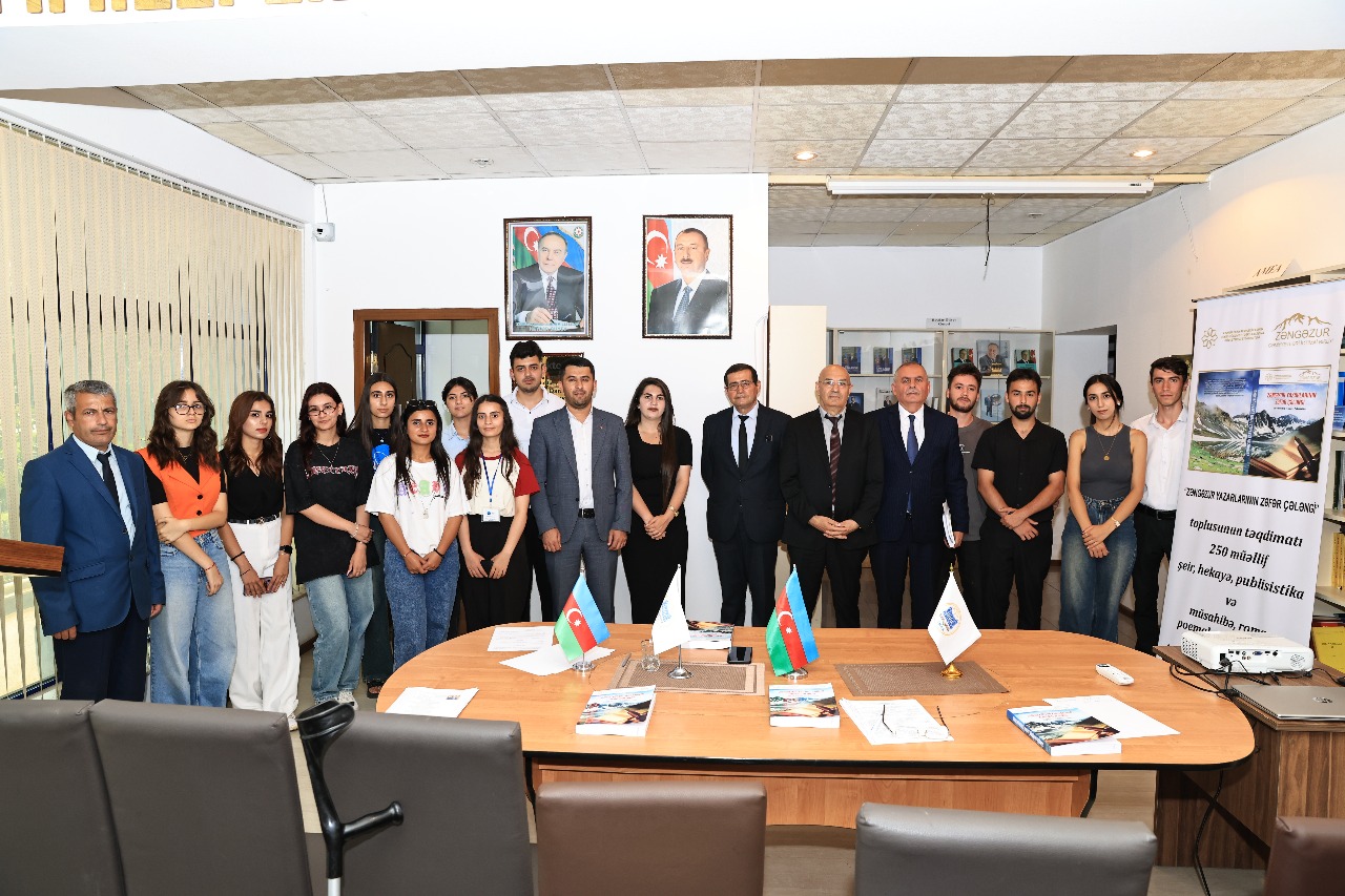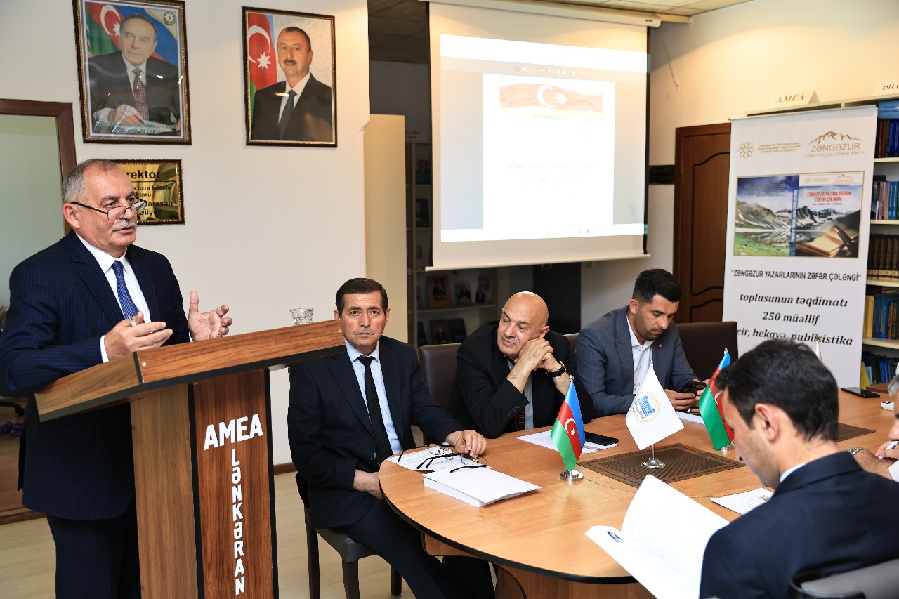 “Zəngəzur” Cəmiyyətləri İctimai Birliyi “Zəngəzur yazarlarının Zəfər çələngi” layihəsini icrasını davam etdirir. 2025-ci il iyunun 26-da layihə çərçivəsində AMEA-nın Lənkəran Elmi Mərkəzində “Zəngəzur yazarlarının Zəfər çələngi” toplusunun təqdimatı keçirilib.