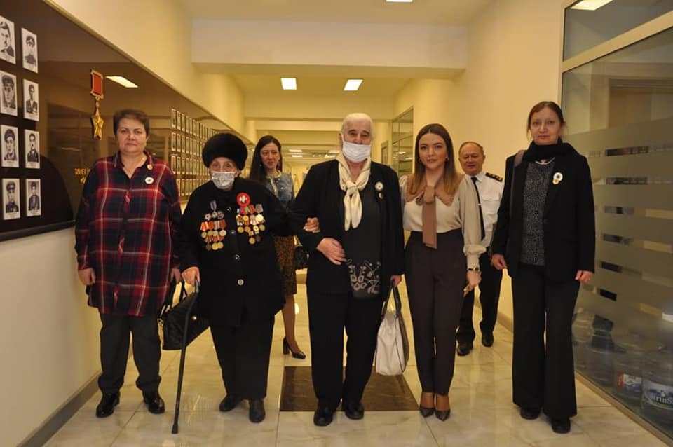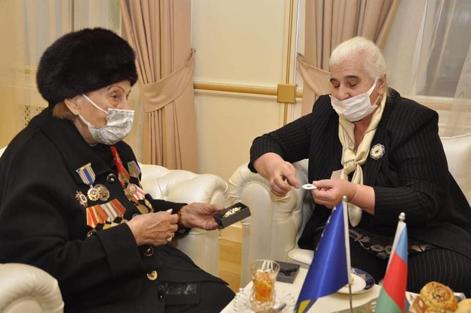 Sonra qonaqlar Müharibə, Əmək və Silahlı Qüvvələr Veteranları Təşkilatının sədri, İkinci Dünya müharibəsinin iştirakçısı, bu yaxınlarda 100 yaşını qeyd edən Fatma Səttarova ilə görüşüblər.