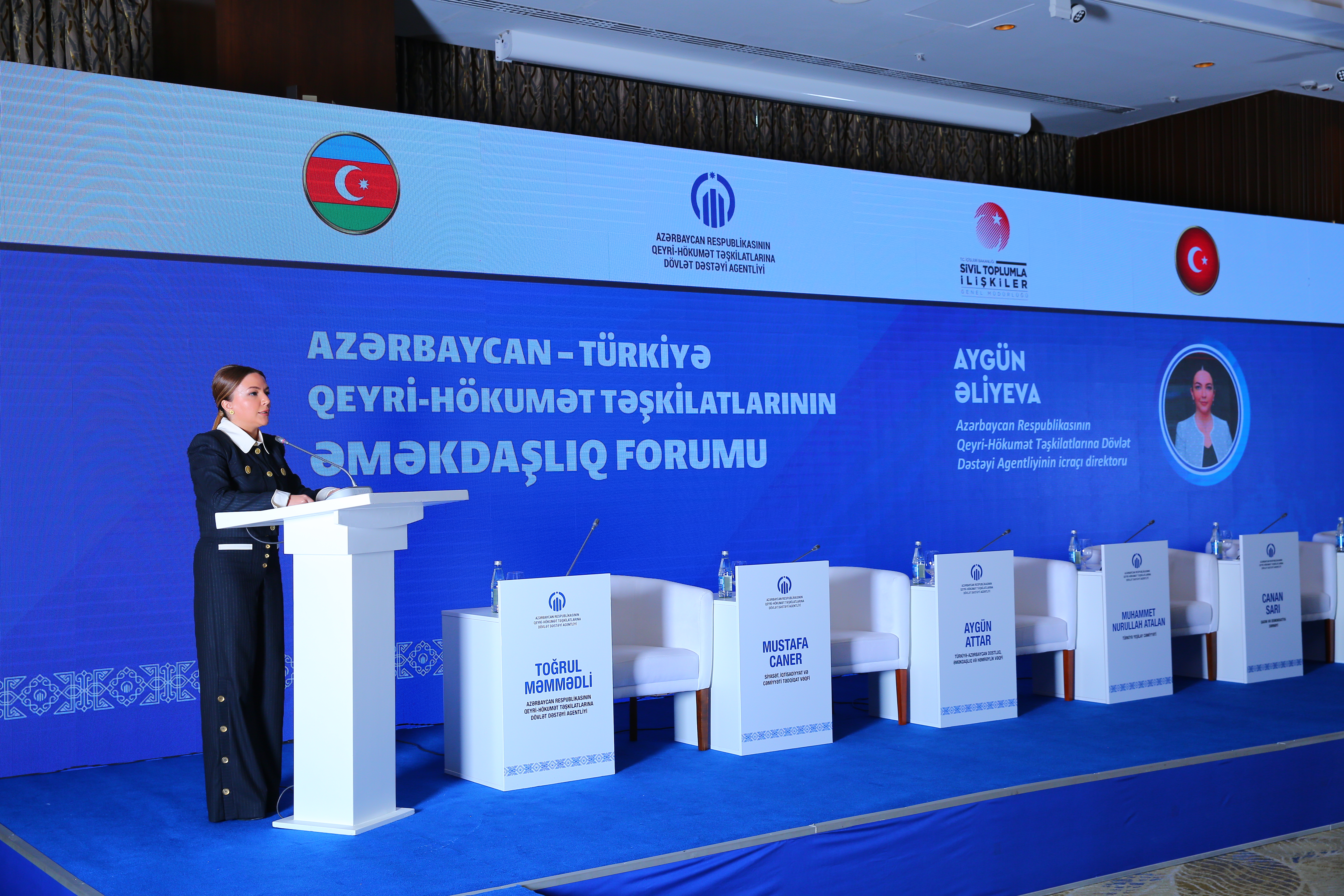 Foruma açılış nitqi ilə başlayan Azərbaycan Respublikasının Qeyri-Hökumət Təşkilatlarına Dövlət Dəstəyi Agentliyinin icraçı direktoru Aygün Əliyeva Azərbaycan – Türkiyə əlaqələrindən və forumun əhəmiyyətindən danışaraq bildirib ki, belə bir əhəmiyyətli forumun Bakıda keçirilməsi vətəndaş cəmiyyətinin inkişafına böyük təkan verəcək. A.Əliyeva onu da qeyd edib ki, Azərbaycanda vətəndaş cəmiyyətinin inkişafı dövlət siyasətidir və vətəndaş cəmiyyəti üzvlərinin fəaliyyətinin dəstəklənməsi ilə bağlı mühüm işlər görülür, onların inkişafı üçün əlverişli mühit yaradılıb. Bunun nəticəsidir ki, ölkəmizdə qeyri-hökumət təşkilatlarının fəaliyyəti ildən-ilə genişlənir.