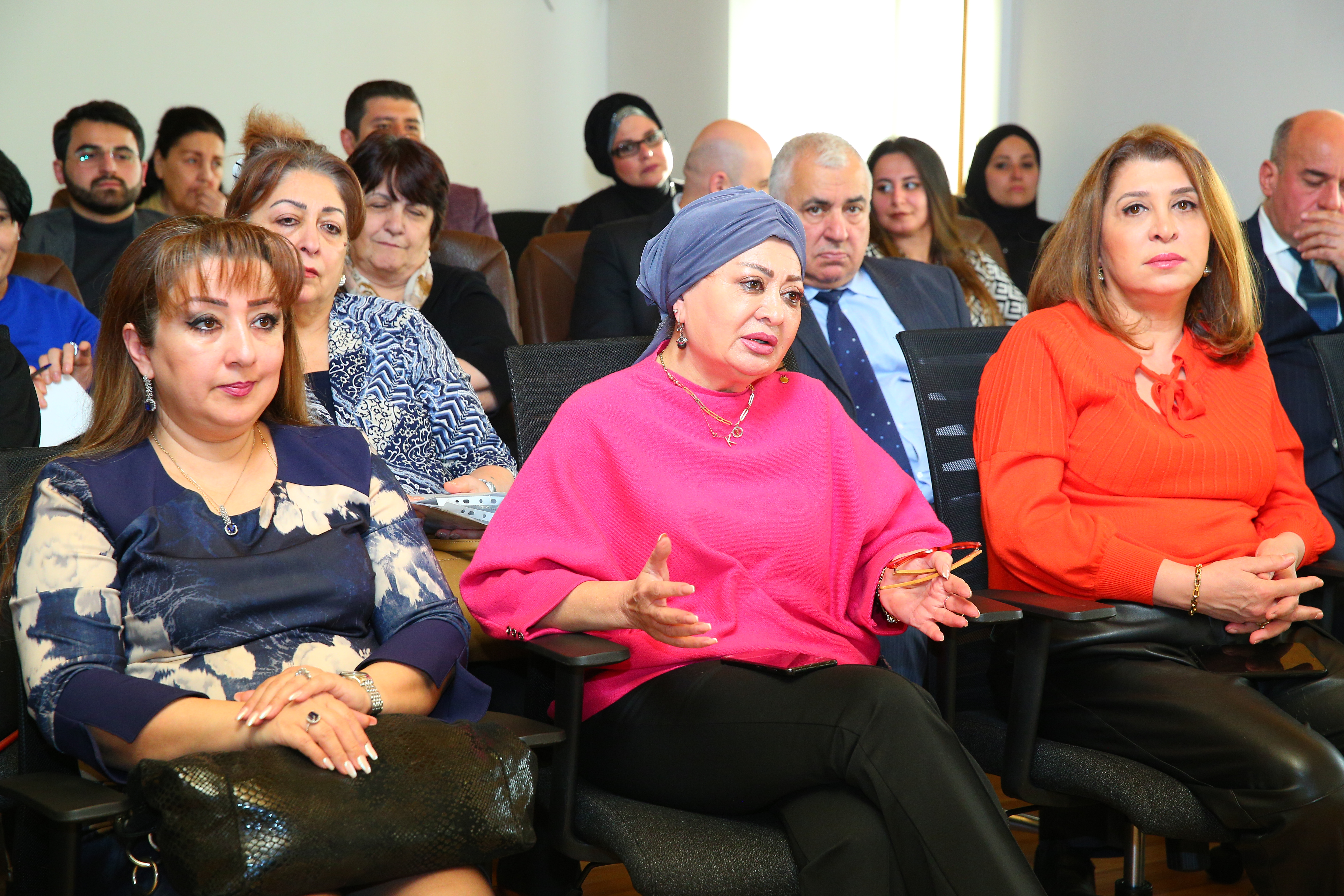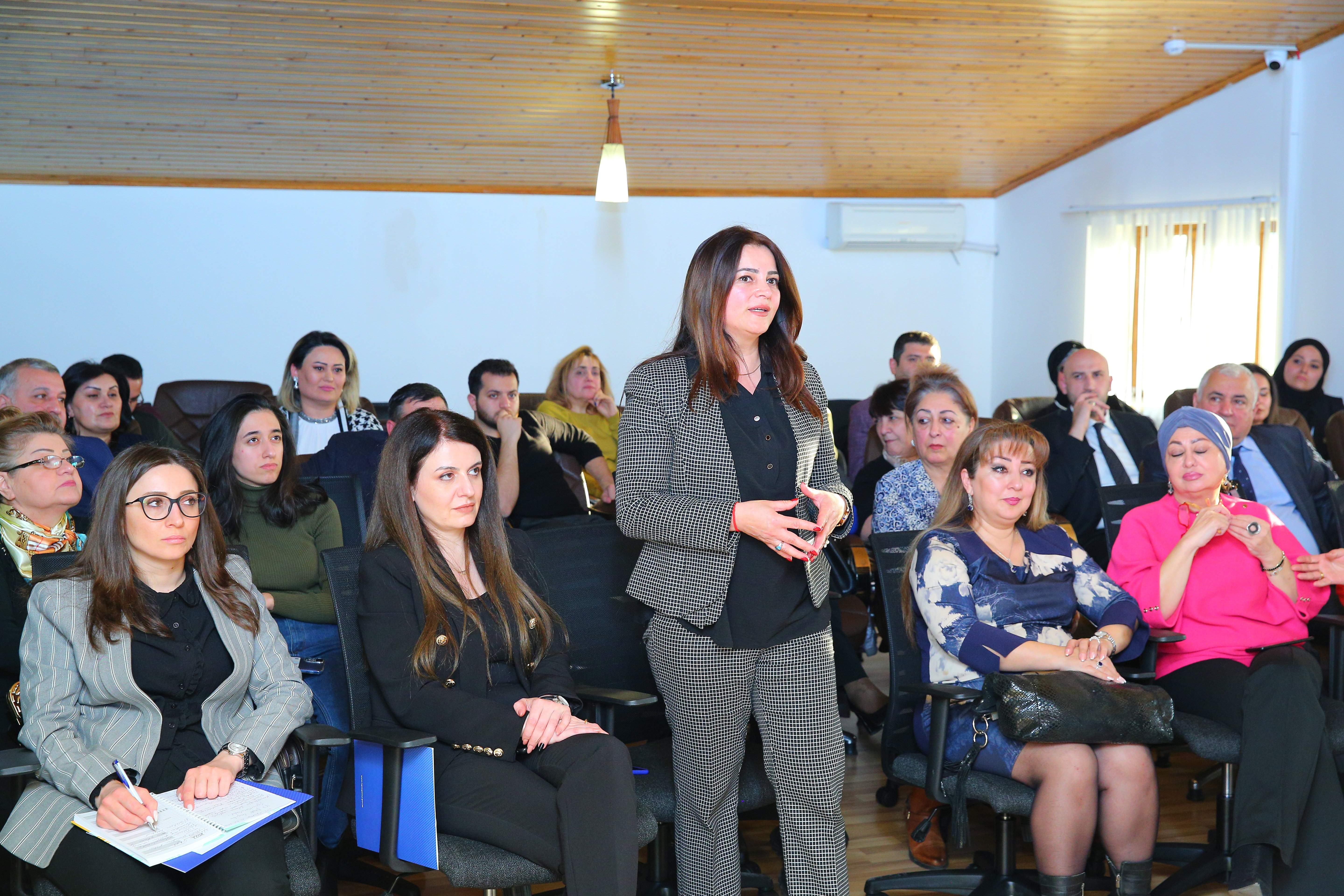 Daha sonra Dövlət Komitəsinin sədr müavini Sədaqət Qəhrəmanova çıxış edərək görüşün Agentliyin dəstəyi ilə həyata keçirilən layihələrin yekunlarını müzakirə etmək, layihələrin icrası zamanı gözlənilən risklər və onların həlli üçün rəy və təklifləri dinləmək, ölkədə bu sahədə dövlət siyasətini həyata keçirən orqan olaraq Komitənin dəstəyini göstərmək məqsədi ilə keçirildiyini deyib. Sədaqət Qəhrəmanova qrant müsabiqəsinin mövzuları olan erkən və qeyri-rəsmi nikahlar, ailə dəyərləri, məişət zorakılığı və ondan müdafiə vasitələri, qadınların reproduktiv sağlamlığı, həssas qrupdan olan qadınların hüquqi, psixoloji və sosial cəhətdən dəstəklənməsi və digər mövzularda layihələrin icrası zamanı diqqətdə saxlanılması vacib olan məqamlar barədə ətraflı məlumat verib.