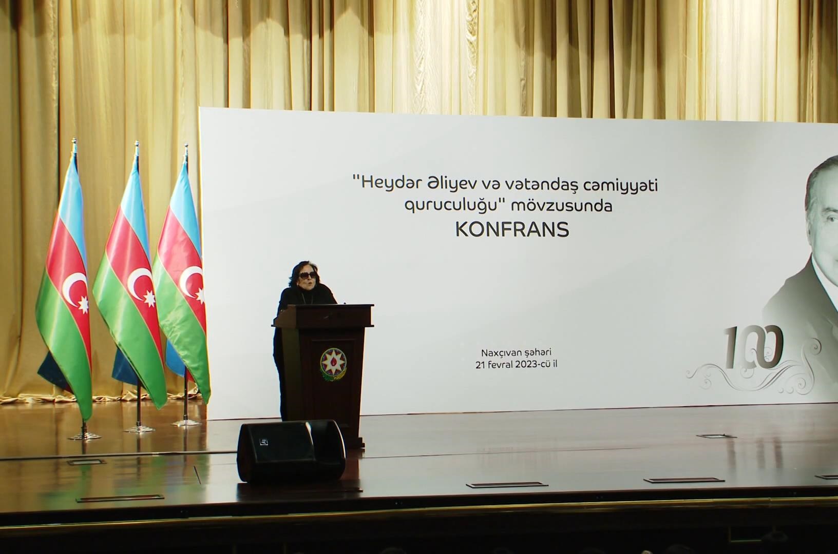 Konfransda çıxış edən Azərbaycan Prezidentinin Naxçıvan Muxtar Respublikasındakı səlahiyyətli nümayəndəsi Fuad Nəcəfli bildirib ki, çoxəsrlik tariximizin ən böyük nailiyyətləri ulu öndər Heydər Əliyevin adı ilə bağlıdır. Ümummilli Liderin Azərbaycan xalqı və dövləti qarşısındakı misilsiz xidmətləri onun fəaliyyətinin bütün mərhələlərini əhatə edir. Heydər Əliyevin həm SSRİ dövründə, həm də müstəqillik illərində ölkəmizə rəhbərlik etdiyi dönəmdə gördüyü işlər respublikamızın iqtisadi qüdrətinin artmasına, Azərbaycanın tarixi nailiyyətlər qazanmasına xidmət edib. Fikir plüralizmi, vətəndaş cəmiyyəti quruculuğu, sosial rifah, sistemli hüquqi islahatlar Ulu Öndərin fəaliyyətinin əsas prioritetləri olub.