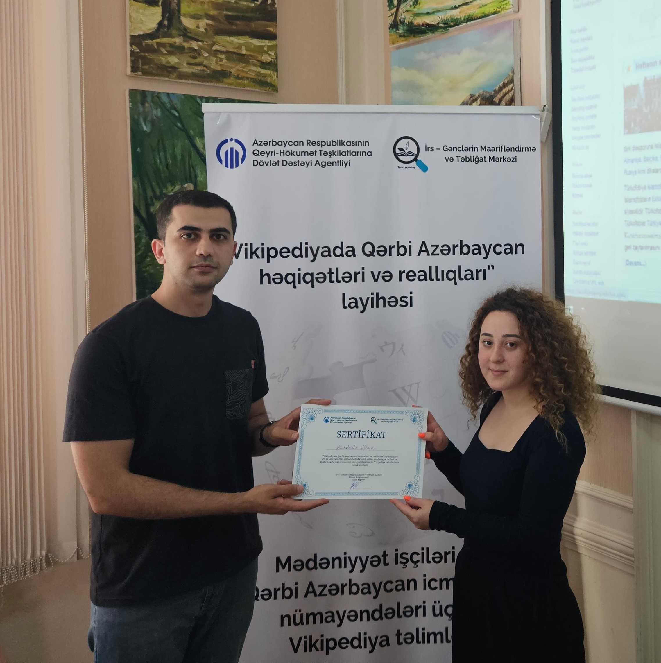 Qeyri-Hökumət Təşkilatlarına Dövlət Dəstəyi Agentliyinin dəstəyi ilə “İrs - Gənclərin Maarifləndirmə və Təbliğat Mərkəzi” İctimai Birliyinin icra etdiyi “Vikipediyada Qərbi Azərbaycan həqiqətləri və reallıqları” layihəsi çərçivəsində Qərbi Azərbaycan İcması və Bakı Şəhər Mədəniyyət Baş İdarəsinin 25 əməkdaşı üçün Vikipediya təlimləri təşkil edilib.