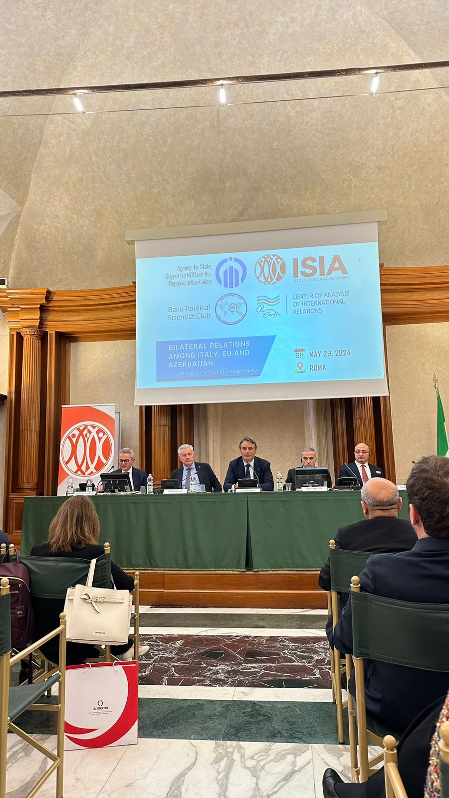 Bu gün “Bakı Politoloqlar Klubu” İctimai Birliyinin və Beynəlxalq Münasibətlərin Təhlili Mərkəzinin təşkilatçılığı, İtaliyanın "İSİA" beyin mərkəzinin tərəfdaşlığı ilə Roma şəhərində Senatda "Azərbaycan, İtaliya, Aİ: əməkdaşlıq və enerji təhlükəsizliyi" mövzusunda Forum keçirilib.