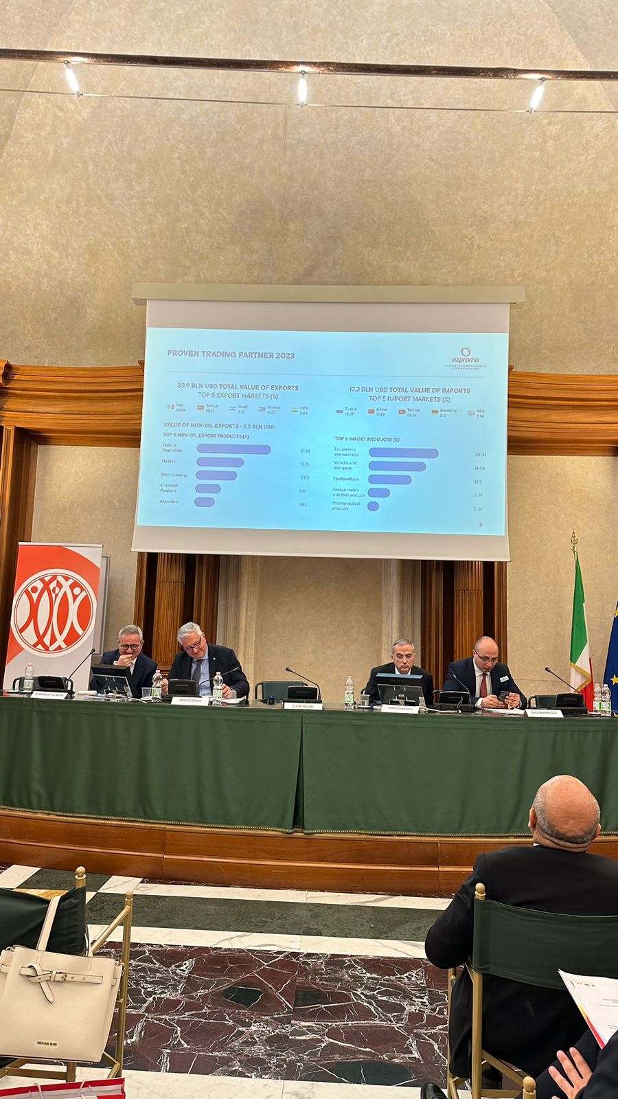Tədbirdə AZPROMO sədrinin müşaviri Sevil Yahyayeva, BMTM şöbə müdiri Cavid Vəliyev, qurumun baş məsləhətçisi Şahmar Hacıyev, İtaliya Asiya İnstitutunun Baş Katibi Domeniko Palmieri, İSİA və Siena Universitetinin tədqiqatçısı Fabio İndeo, ARTE Energy Reseller and Trader Assosiasiyasının prezidenti Marco Ferraresi, İSİA-nın vitse-prezidenti Sergio Divina çıxış edərək yaşıl və ənənəvi enerji, kommunikasiya - nəqliyyat, investisiyalar kimi mövzular üzrə təqdimatlar ediblər. İtaliyalı mütəxəssislər Azərbaycanın rəsmi Roma və Aİ üçün etibarlı tərəfdaş olduğunu, COP29-un Azərbaycanda keçirilməsinin beynəlxalq nüfuzunun əyani göstəricisi olduğunu qeyd ediblər.