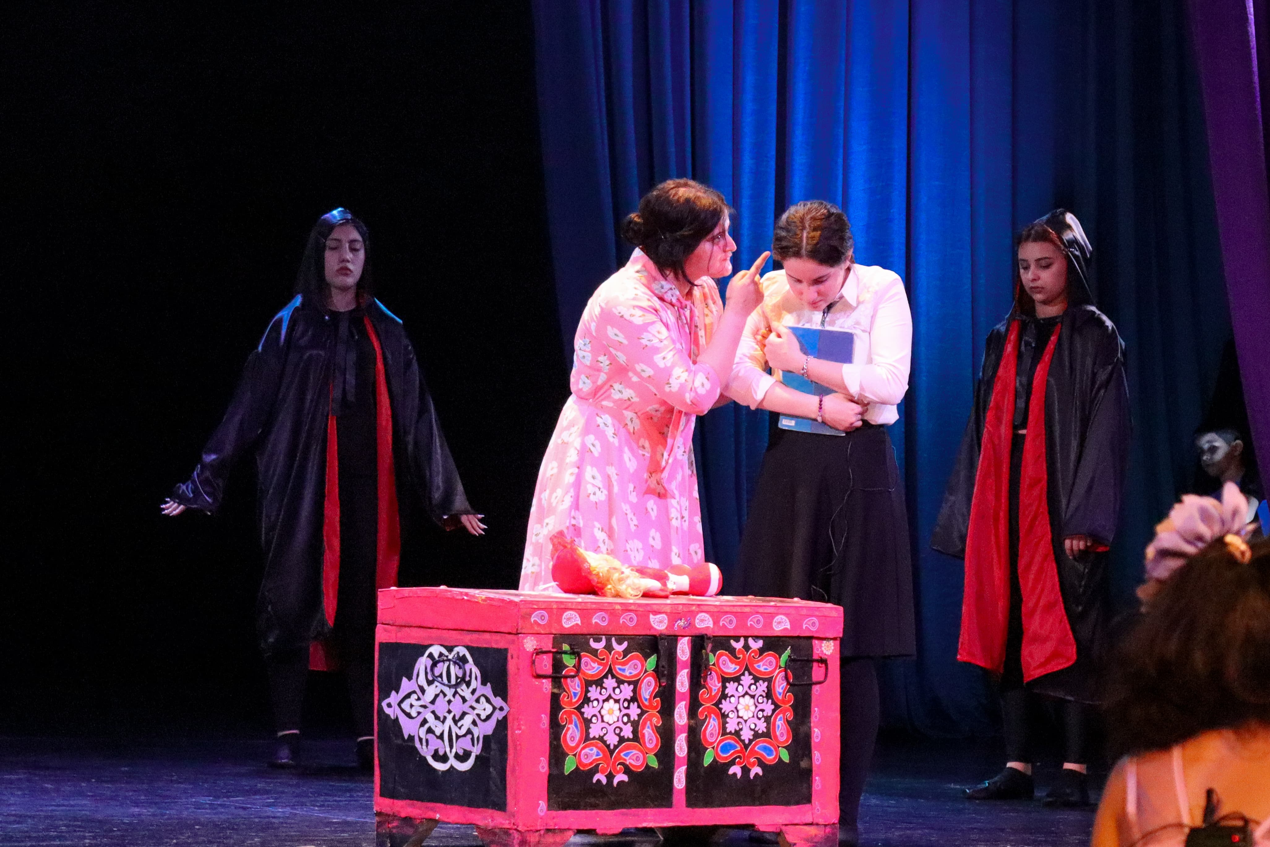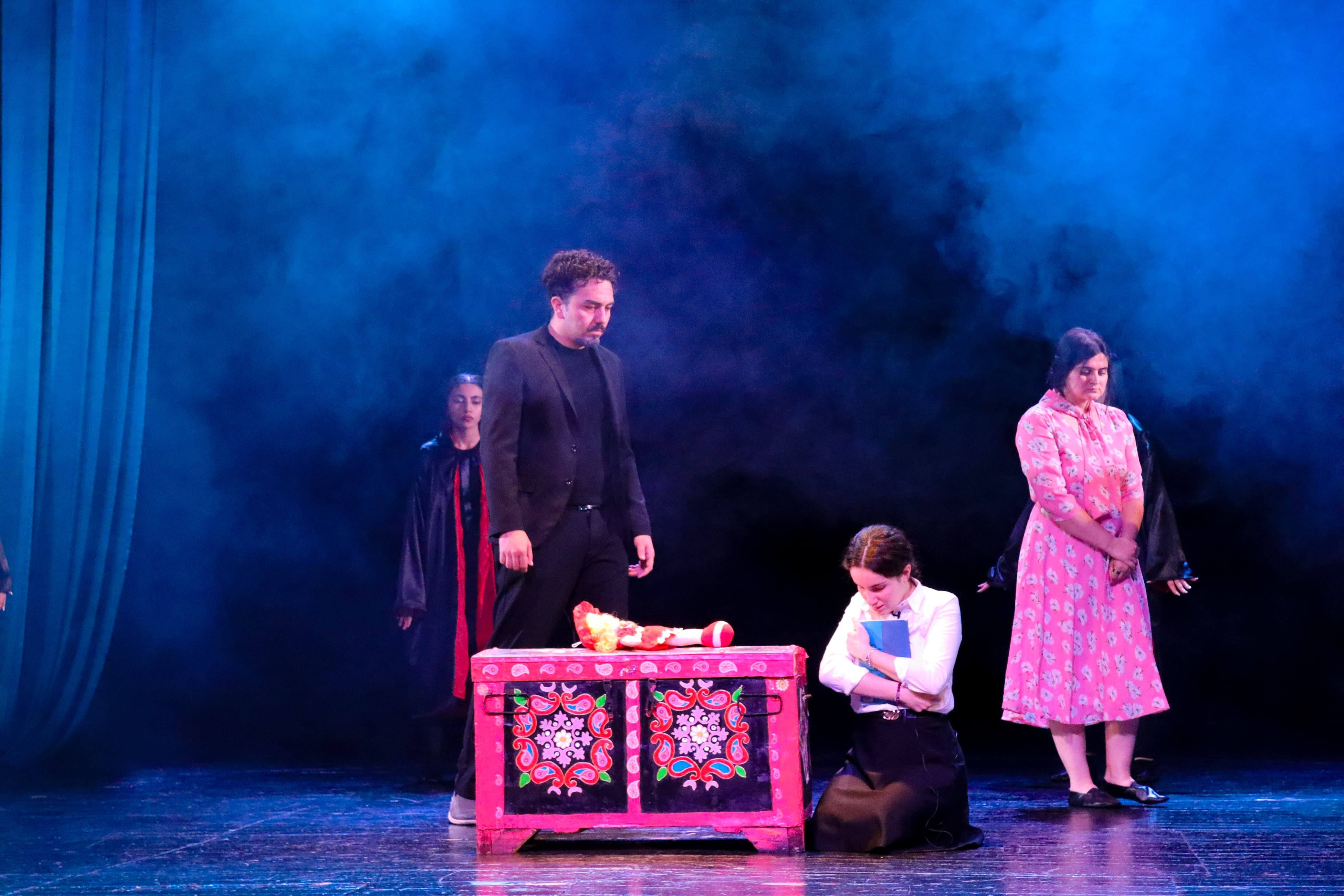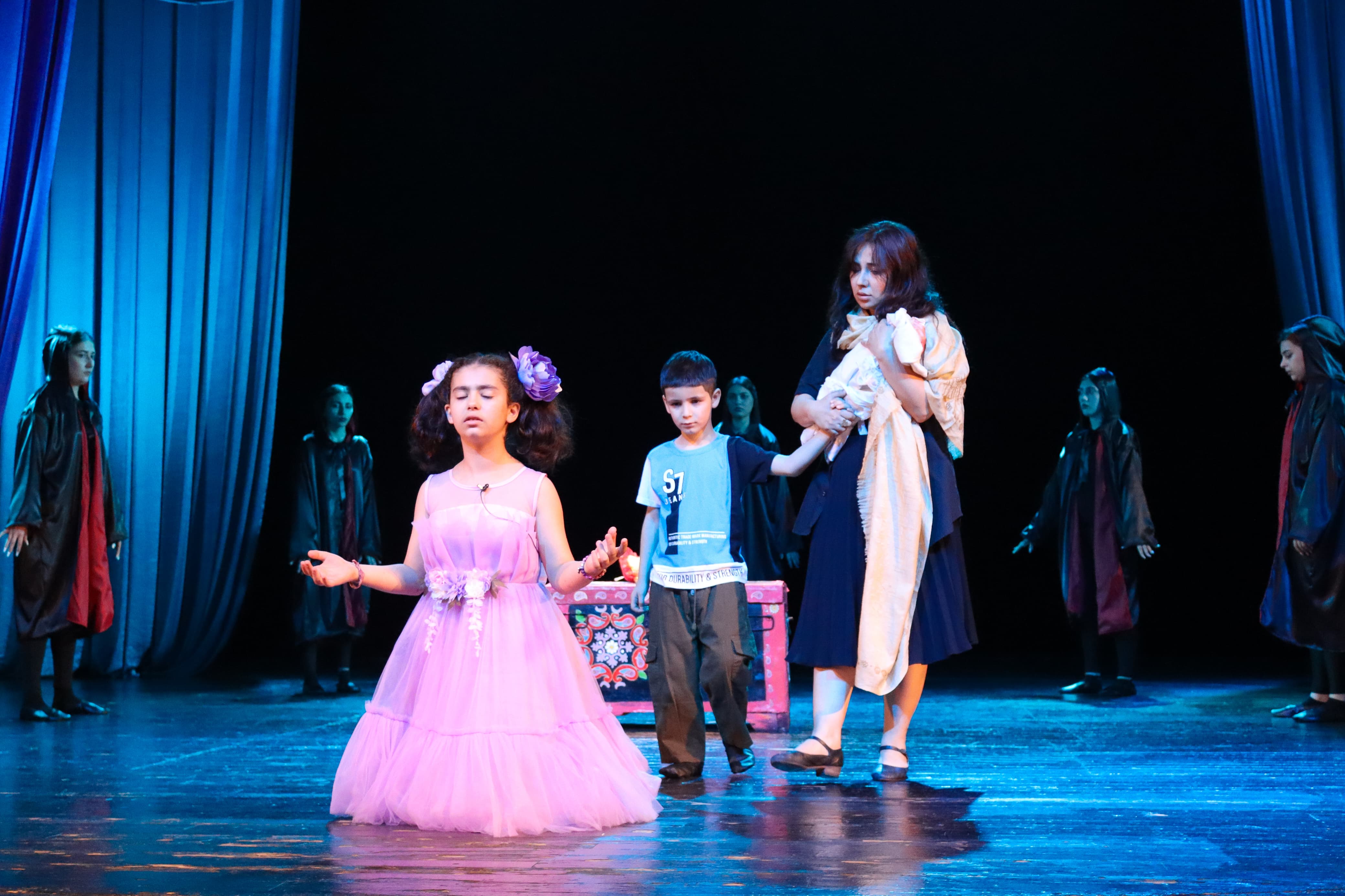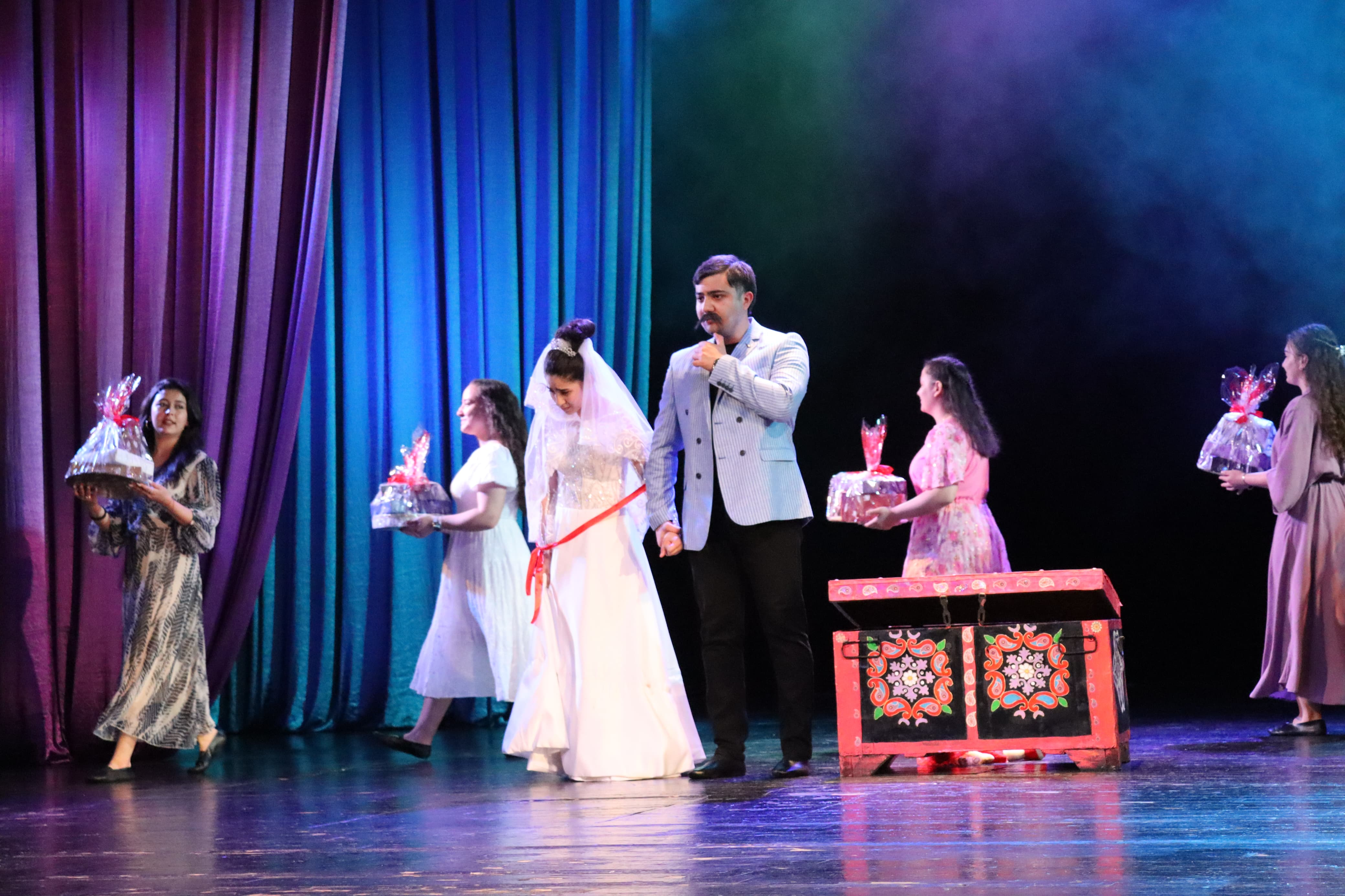Teatr tamaşasında erkən nikahla yanaşı, təhsildən kənarqalma, məişət zorakılığı kimi sosial problemlərə incəsənət rakursundan toxunulub.
