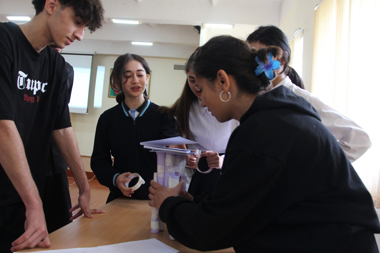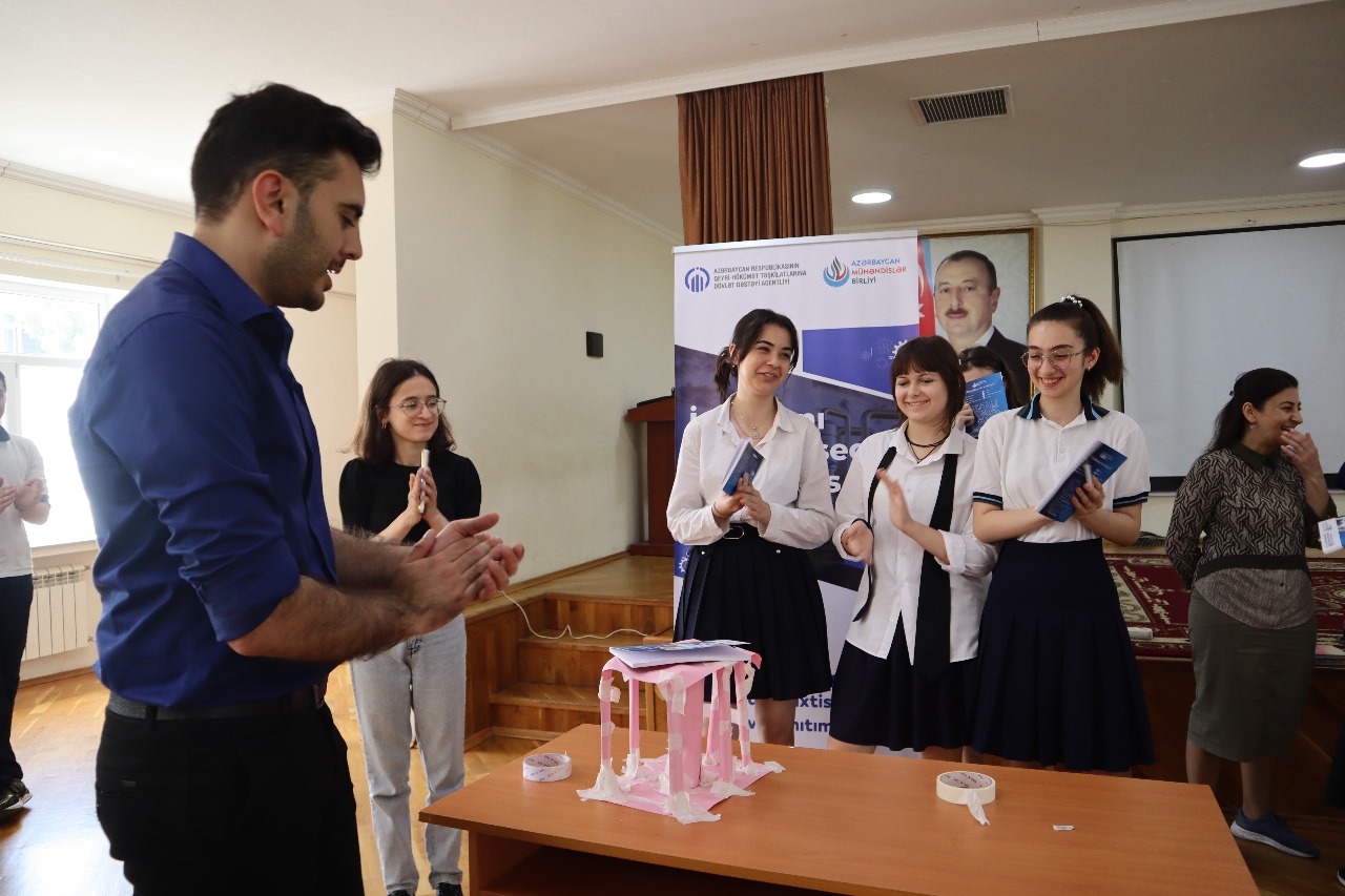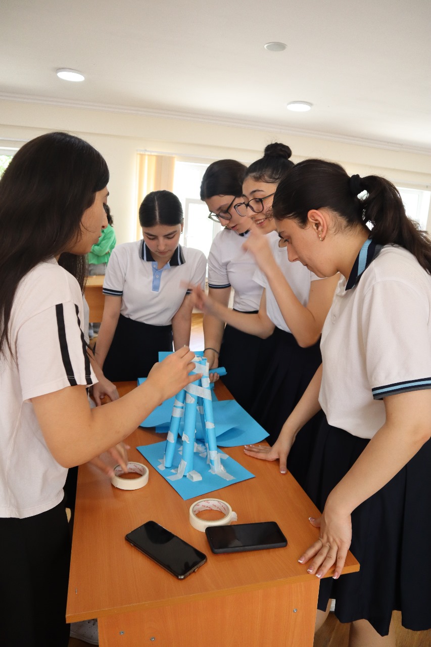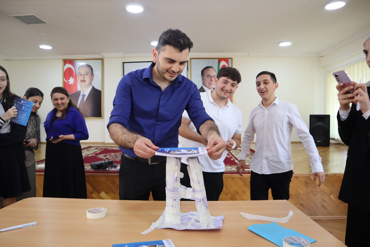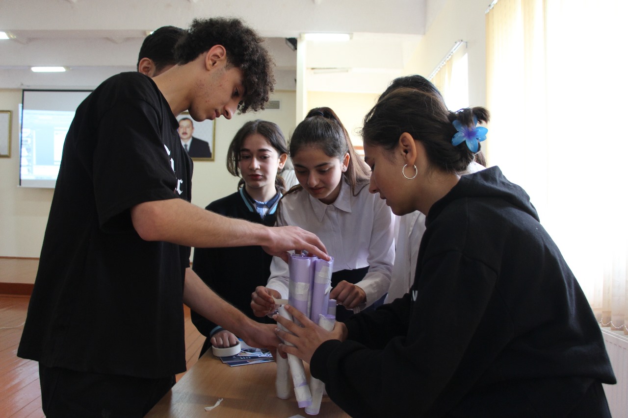 Təlimlər çərçivəsində şagirdlərə 15 dəqiqə ərzində kağız və yapışqandan istifadə edərək hündür və dayanıqlı konstruksiya qurma işləri tapşırılıb, onların komandada işləmə, məntiqi təfəkkür, mühəndis yanaşması bacarıqları yoxlanılıb.
