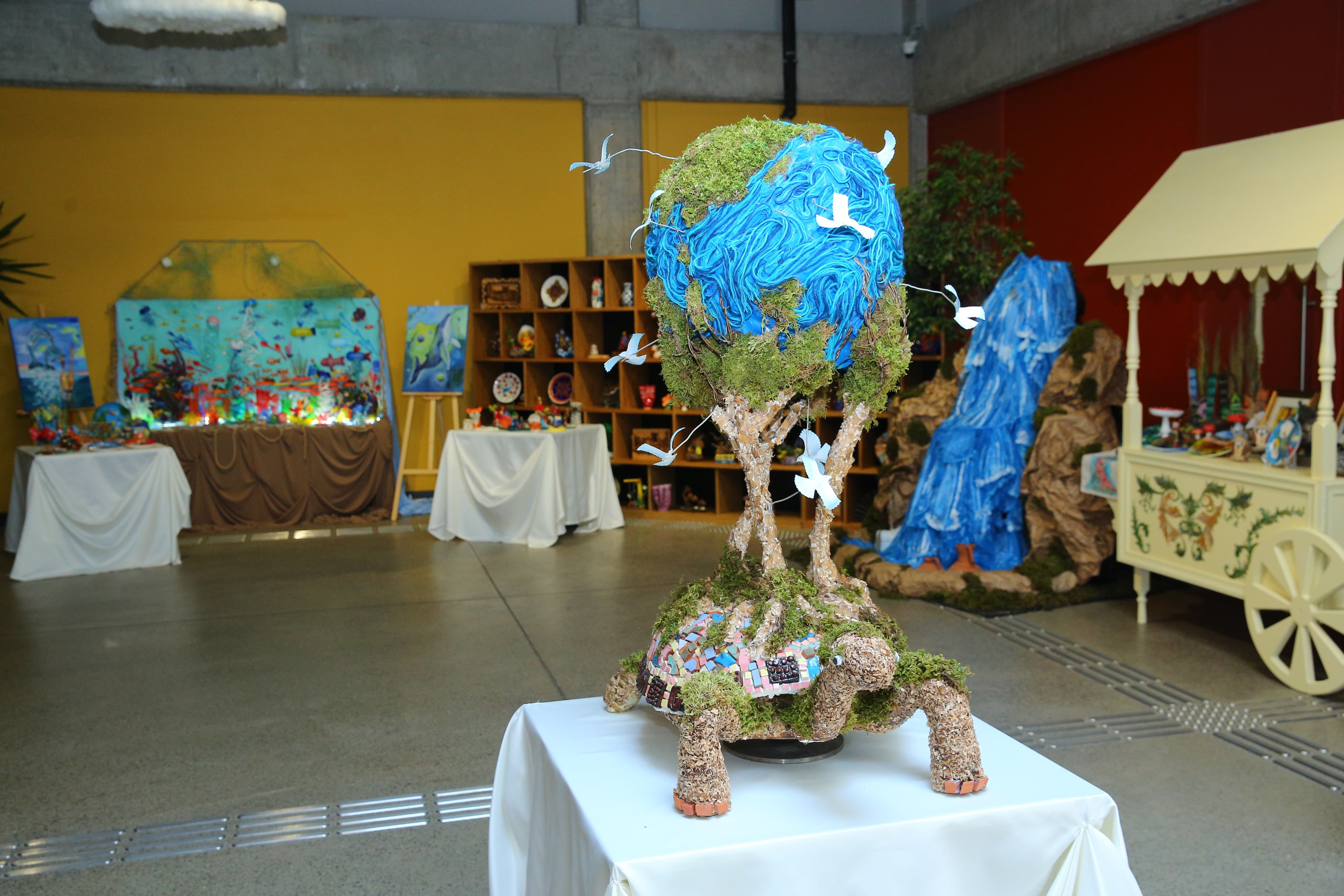 İlk olaraq, Mərkəzdə istifadəyə yararlı olmayan eko və bio materiallardan "Yaşıl dünya naminə həmrəylik ili" çərçivəsində hazırlanmış əl işlərindən ibarət sərgiyə baxış keçirilib.
