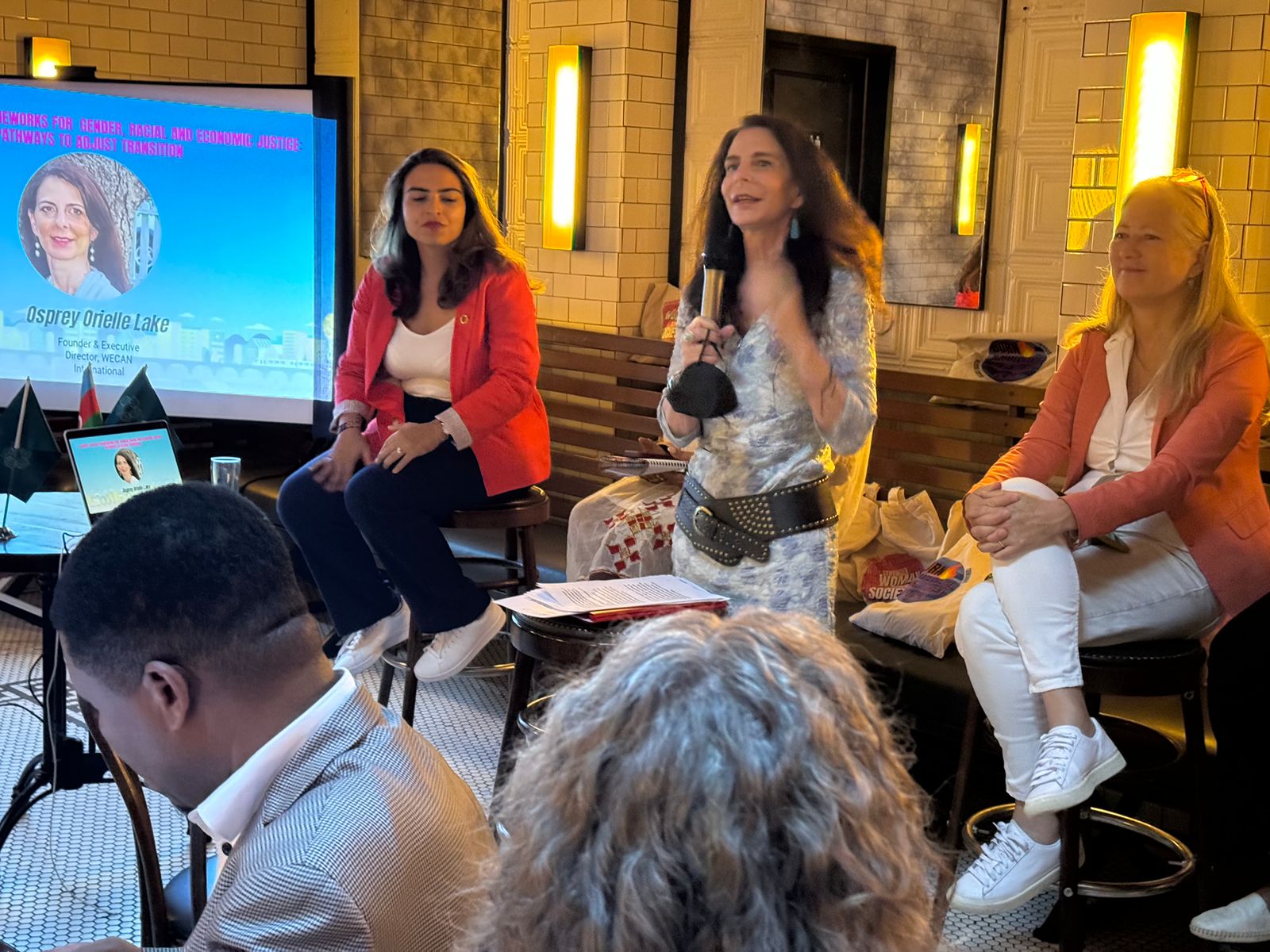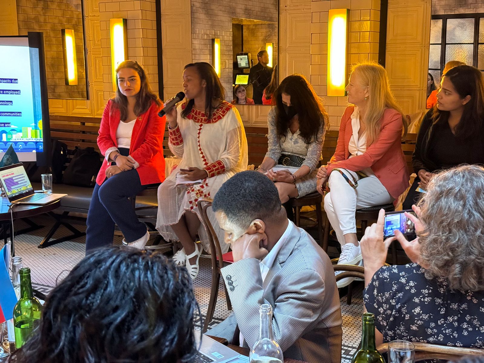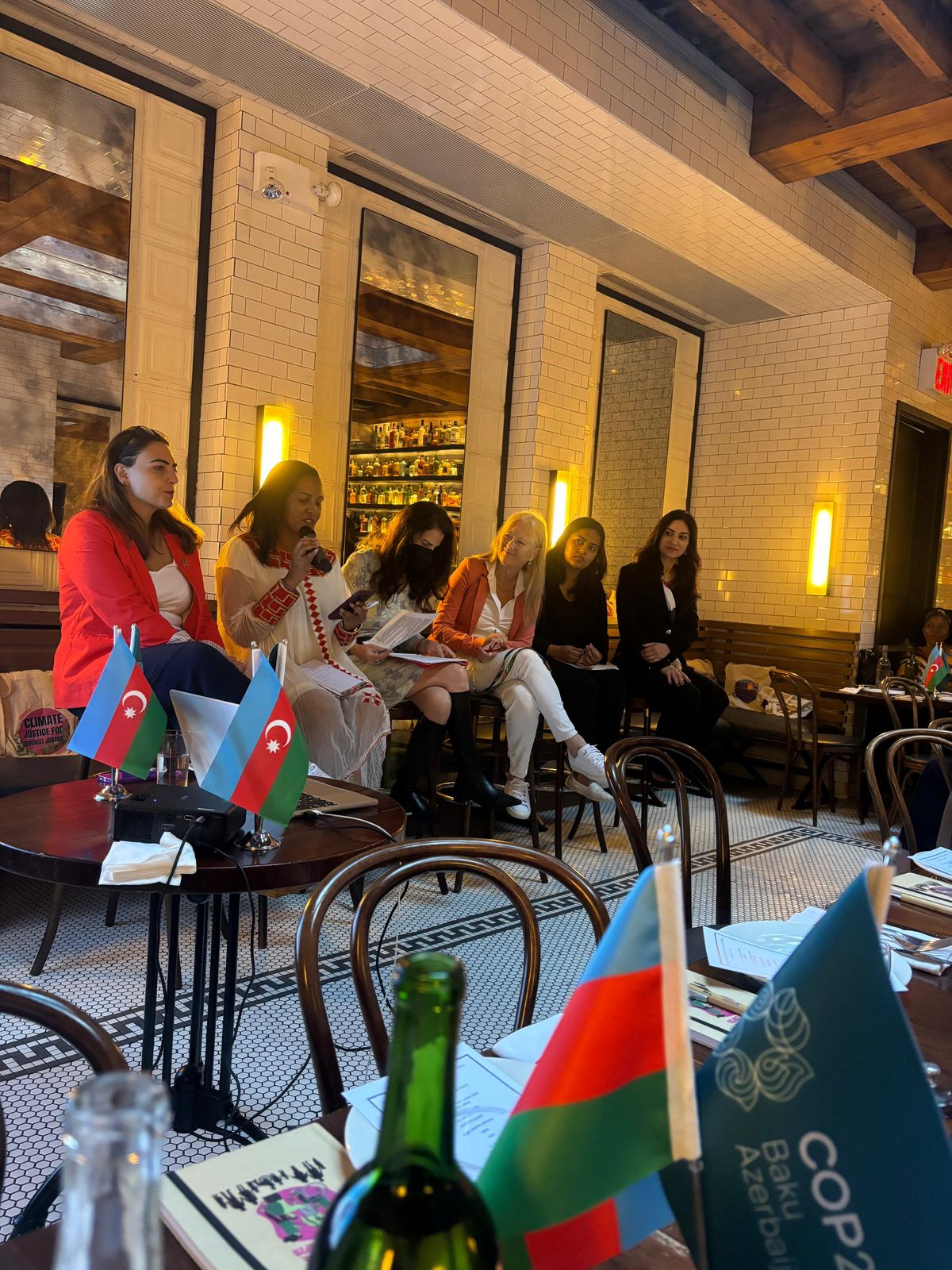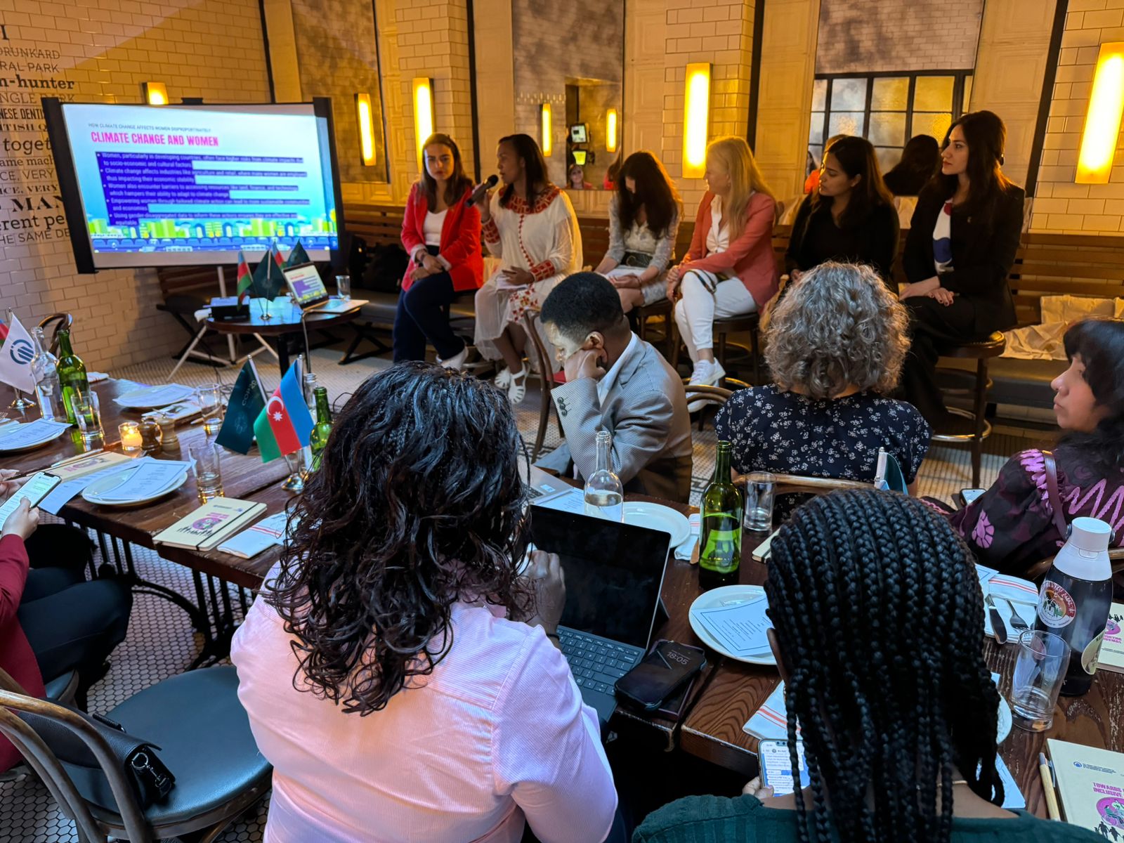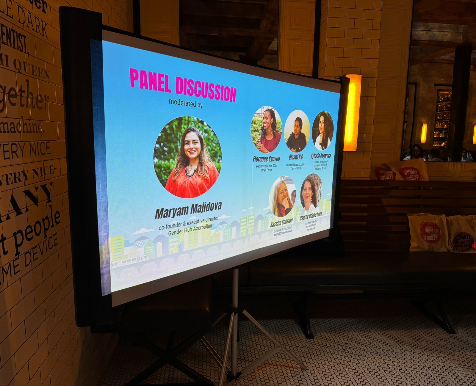 Panel müzakirələrdə “Qadınların iqtisadi gücləndirilməsi, məlumat və iqlim dəyişmələri” mövzusunda Keniyanın “SDG Forum” təşkilatının icraçı direktoru Florens Syevuo, “İnsanların hərbi hüquqları, sülh və iqlim dəyişmələri” mövzusunda Nepalın İnsan Hüquqları və Ədalət Mərkəzinin (HRJC) icraçı direktoru Ojaswi K.C, “Yerli xalqları yeni iqtisadiyyatda gücləndirmək: qədim bilikləri müasir innovasiya ilə birləşdirmək” mövzusunda “IndiGenius Global” təşkilatının təsisçisi Aytəkin Əsgərova, “Gender ədalətli iqlim həlləri: qadınların lokal liderliyi və bunun milli səviyyədə iqlim siyasətləri üçün təsiri” mövzusunda “WMG”/“WECF” təşkilatlarının icraçı direktoru Sascha Gabizon, “Gender, irqi və iqtisadi ədalət üçün iqlim ədaləti çərçivələri: keçidi tənzimləmək üçün yollar” mövzusunda “WECAN” təşkilatının icraçı direktoru Osprey Orielle Lake çıxışlar edib.